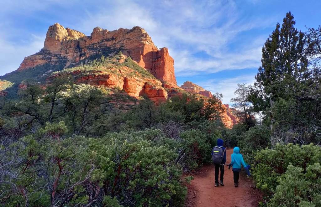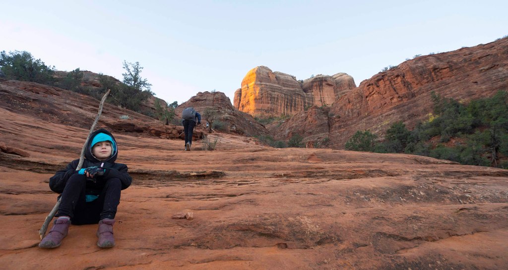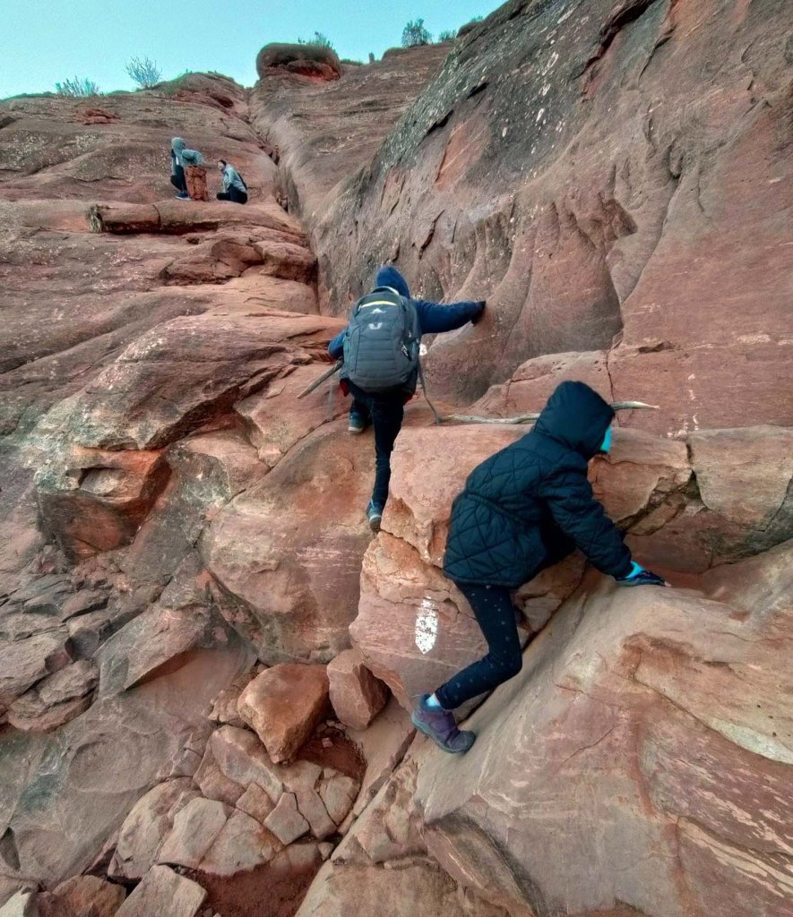 Można przejść dookoła szlakiem Courthouse Butte and Bell Rock Loop liczącym 3.9 mili. My z powodu braku czasu wybieramy opcję wspinaczki ….. Jest to tak naprawdę improwizacja.