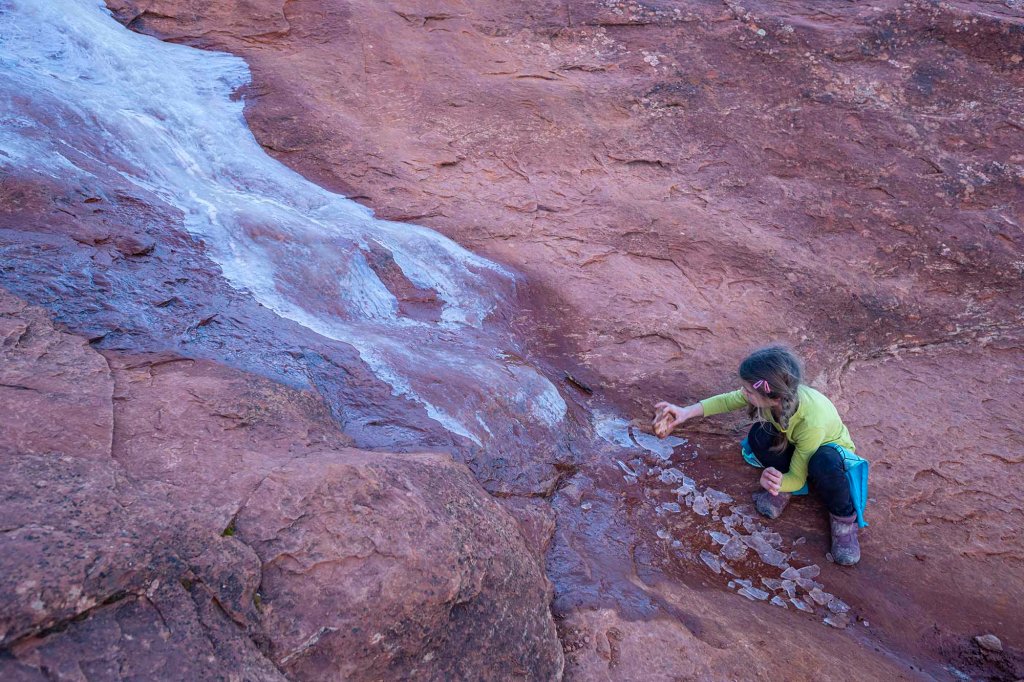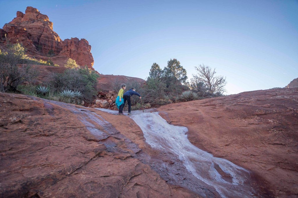 Wracamy ześlizgując się na tyłkach ze skał … czasami wspomagani przez zamarznięte strumyki 🙂