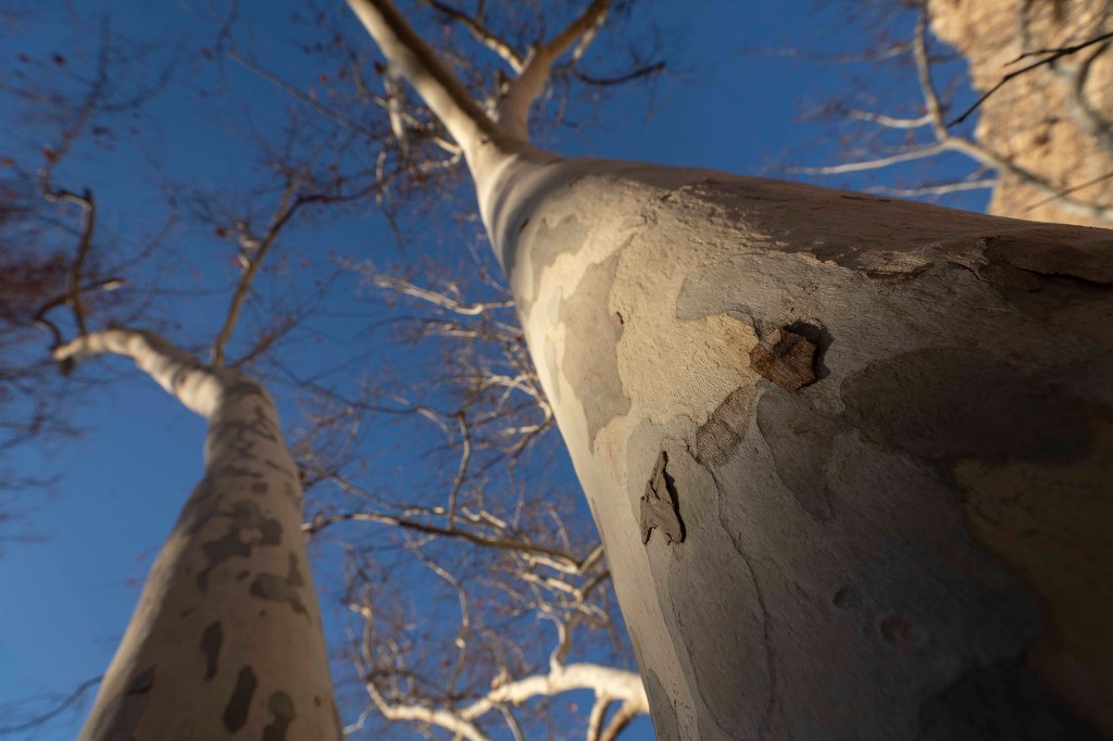 Uwagę naszą przykuwają zabarwione na odcień purpurowy powyginane gałęzie zeschnietych drzew…