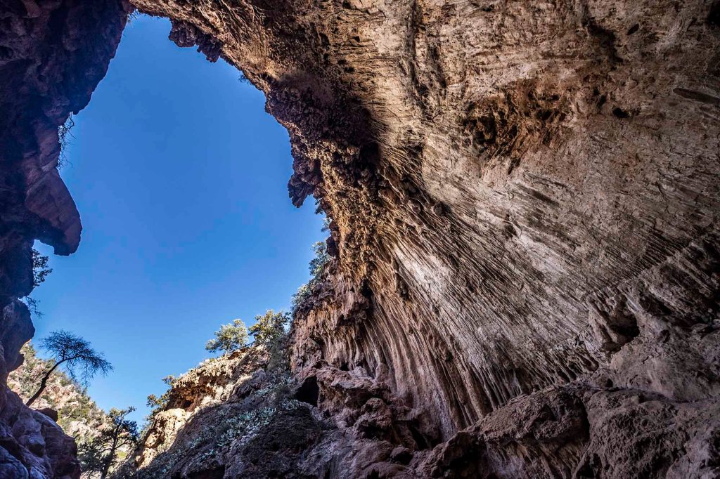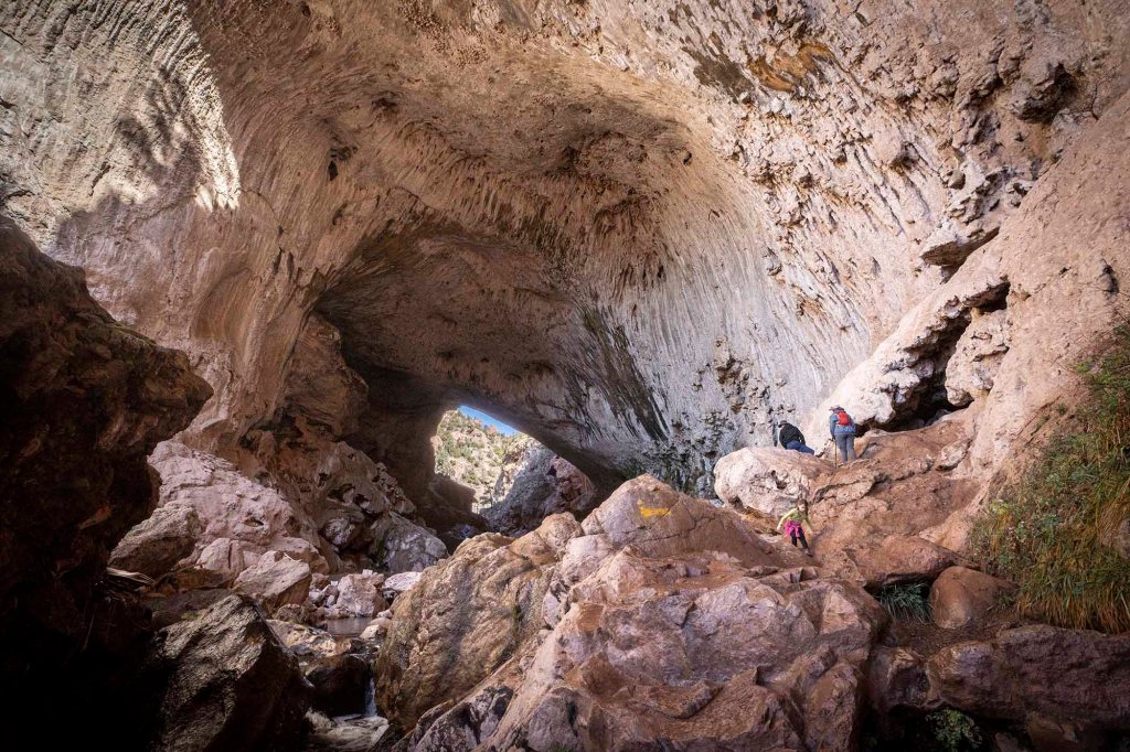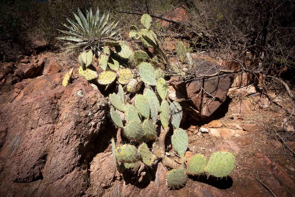 Meandrując pomiędzy kaktusami dochodzimy w końcu do niszy skalnej o prawie pionowych ścianach.