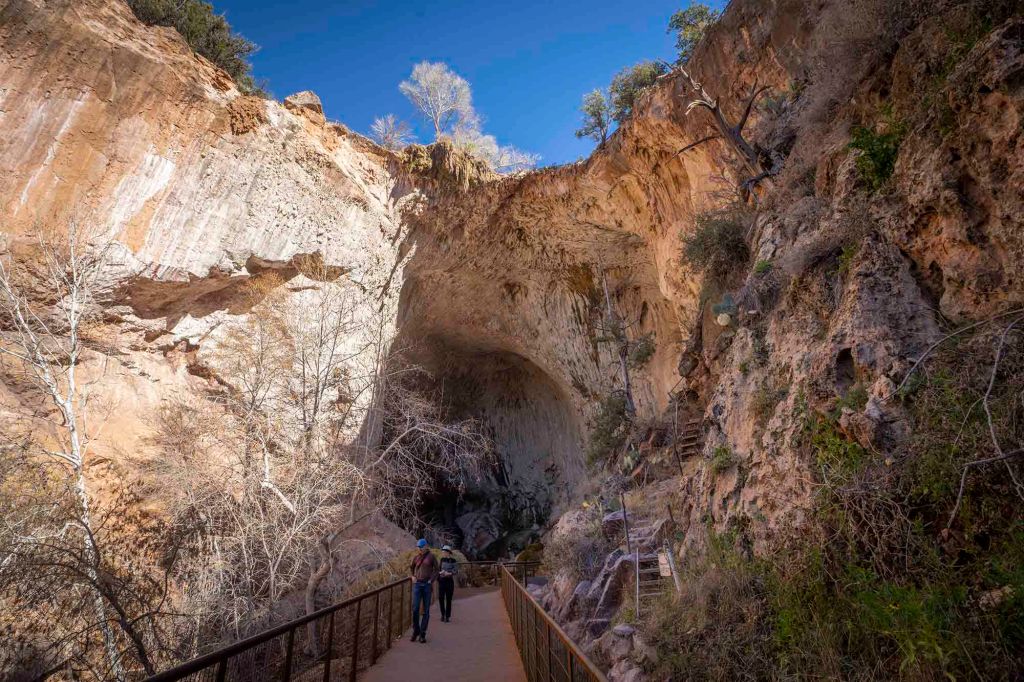 Patrząc w górę nasuwa się pytanie jak w ogóle można było zaadoptować tam miejsce do zamieszkania …. Około 1000 lat temu Indianie Sinagua w skalnym urwisku zbudowali kilku piętrowe domostwa. Zajmowali się oni głównie zbieractwem (orzechów, jagód, owoców kaktusowych, szarłatu) i łowiectwem polując między innymi na antylopy, niedźwiedzie króliki i kaczki. Uprawiali również kukurydzę, fasolę i dynie usprawniając rolnictwo w systemy nawadniania. Zajmowali się też handlem wymiennym z innymi plemionami oferując za muszelki, sól czy barwniki swoje wspaniałe utkane kosze, wyroby garncarskie czy ubrania. Indianie ci zniknęli nagle z tego terenu około roku 1400, a powody do końca nie są znane. Uważa się, że mogło to wyczerpanie zasobów żywieniowych z powodu przeludnienia lub też konflikt pomiędzy różnymi grupami plemiennymi.