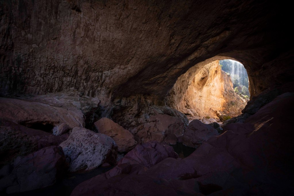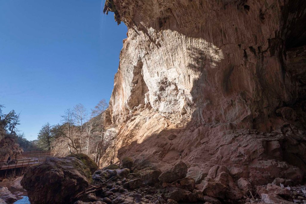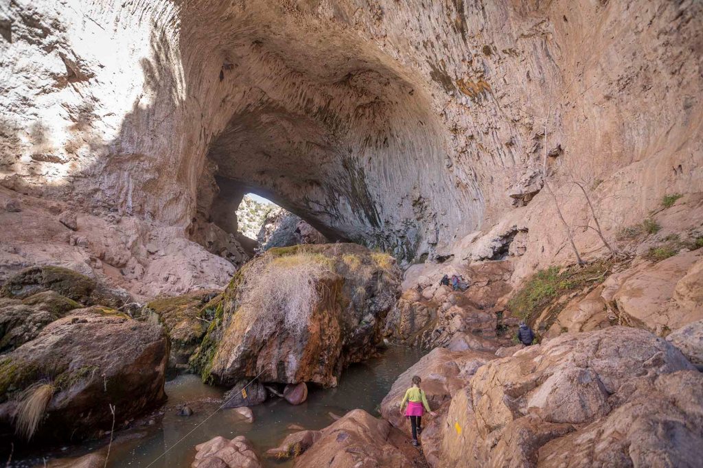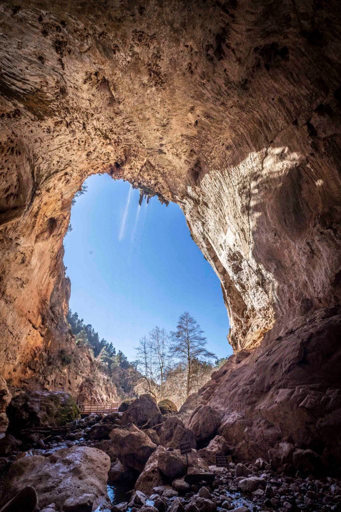 Jest to największy trawertynowy most na świecie, a dla urozmaicenia ozdobiony jeszcze delikatnym wodospadem ….. Długość całego tunelu to 120 metrów. (Maksymalna szerokość 46 metrów. Maksymalna wysokość 56 metrów).
