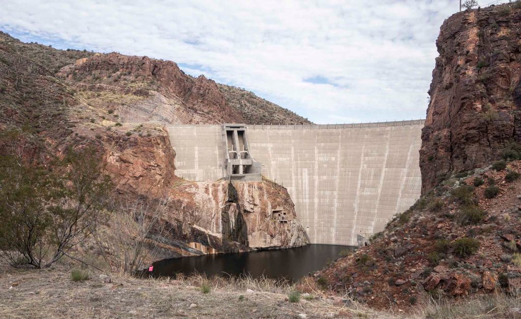 Podjeżdżamy na chwilkę do tamy – Theodore Roosevelt Dam i zawracamy spowrotem w kierunku miasteczka GLobe, bo szutrowa droga numer 88 prowadząca na sktóty do Phoenix jest zamknięta z powodu zerwania mostu.