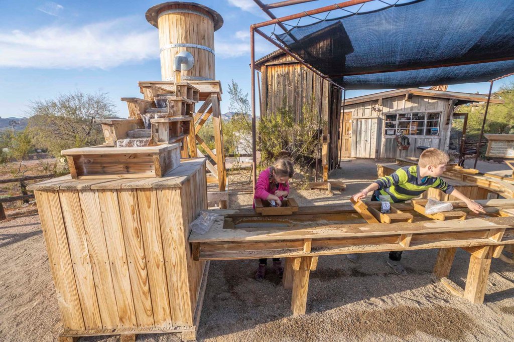 Podczas cieplejszej pory roku można też pobawić się w poszukiwaczy złota przepłukując ziarenka piasku w przygotowanym do tego miejscu.