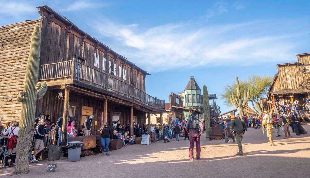 Na koniec dnia – bo niestety do zachodu słońca została nam już tylko godzinka udajemy się do Goldfield ghost town – komercyjnego miejsca wypełnionego po brzegi głównie rodzinkami z dziećmi.