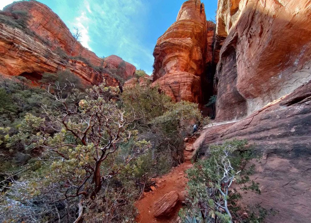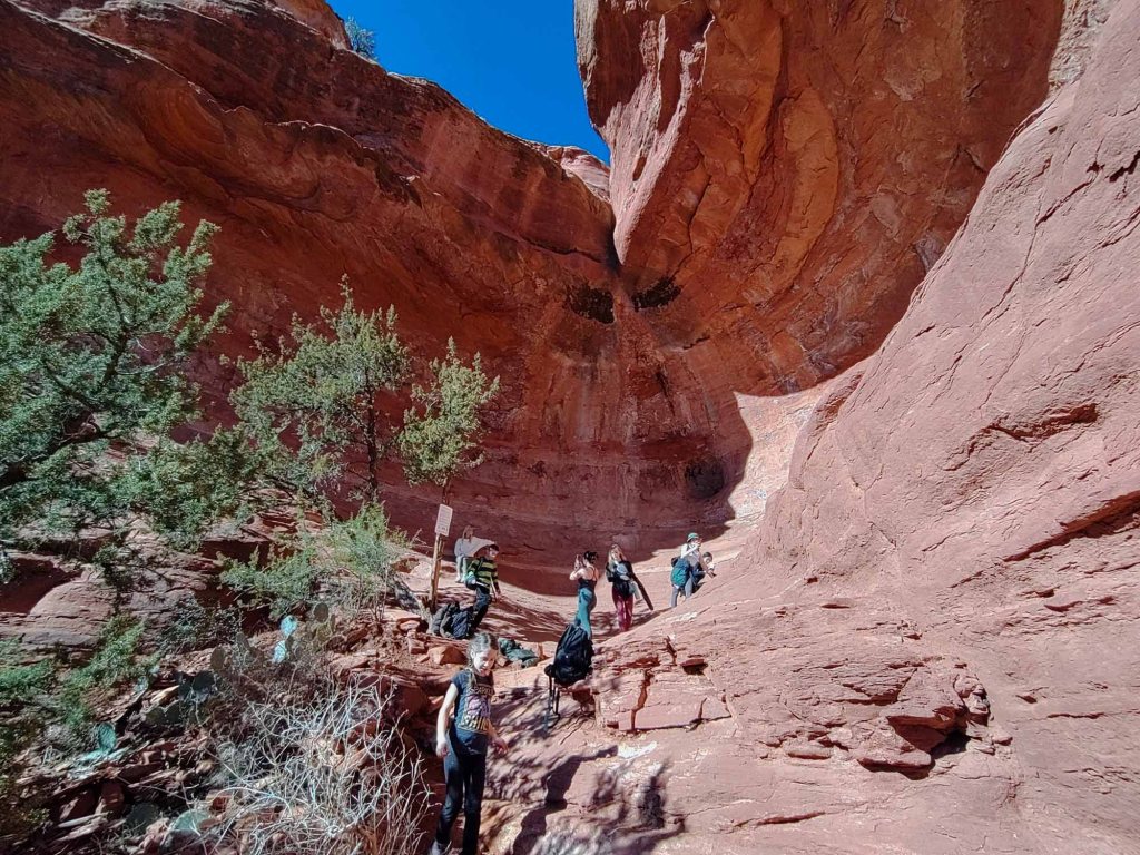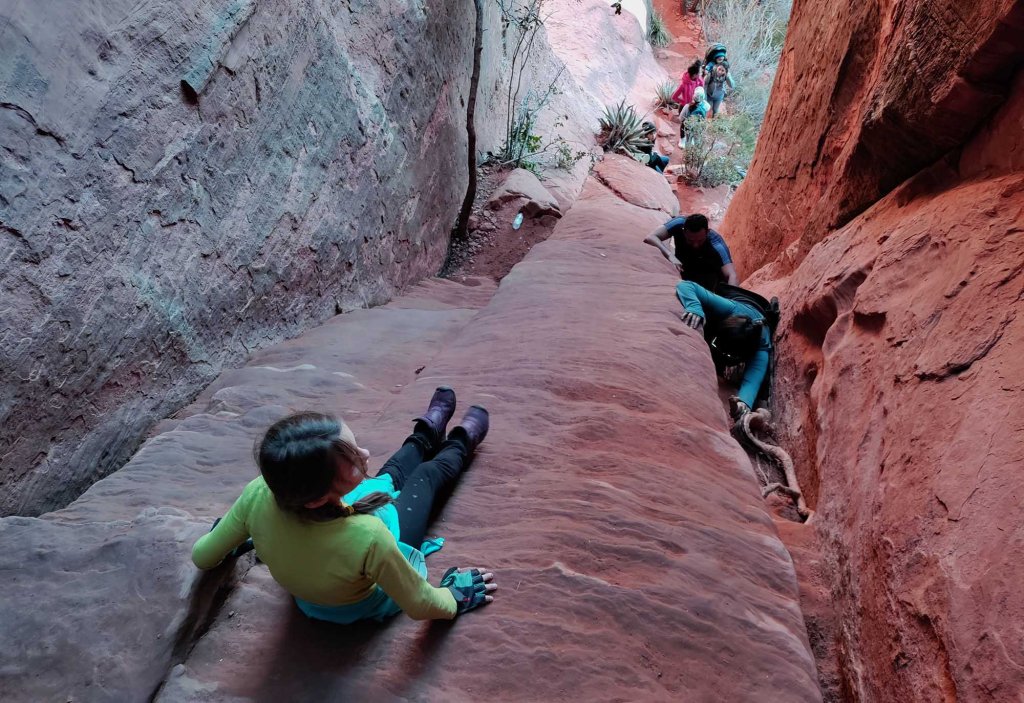 Przy schodzeniu w dół mijamy już dziesiątki ludzi sunących powoli ku górze ( jest to dość popularny szlak ze względu na występujący tu vortex 🙂