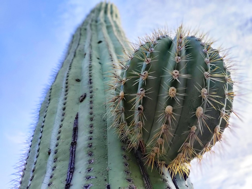 Saguaro rośnie bardzo powoli – Po 10 latach ma tylko około 15 cm wysokości. Ciepłolubny występuje głównie na południowych zboczach. W czasie deszczu pobiera bardzo szybko wodę, którą magazynuje w łodydze na okres suszy. Średnia długość życia takiego wielkoluda to 150 lat (a rekordowo dochodzi nawet do 200 lat). Może ważyć nawet i 6 ton…. Po śmierci saguaro jego zdrewniałe żebra można wykorzystać do budowy dachów, ogrodzeń i części mebli.