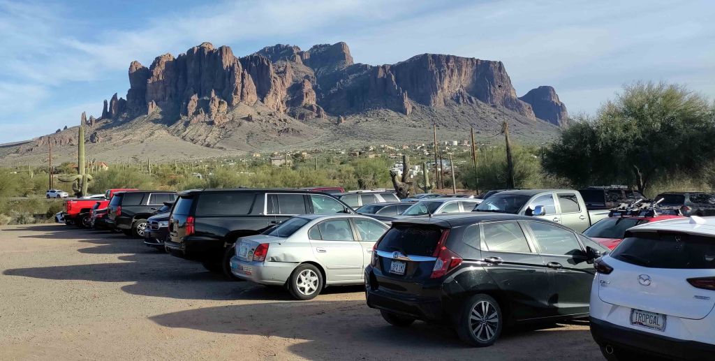 Parking, skąd wychodzi szlak jest stosunkowo mały i płatny (National Park pass lub $5/auto). Kiedy zjawiamy się tutaj tuż przed godziną 11am oczywiście wszystkie miejsca parkingowe są już zajęte. Parkowanie na poboczu (za skrzyżowaniem przy Boynton Pass Road) jest dozwolone….i to daje nam jedyną szansę na znalezienie miejscówki.