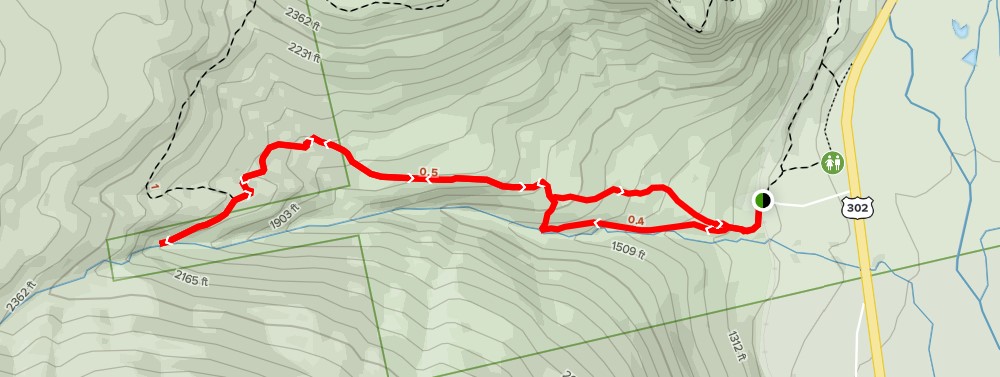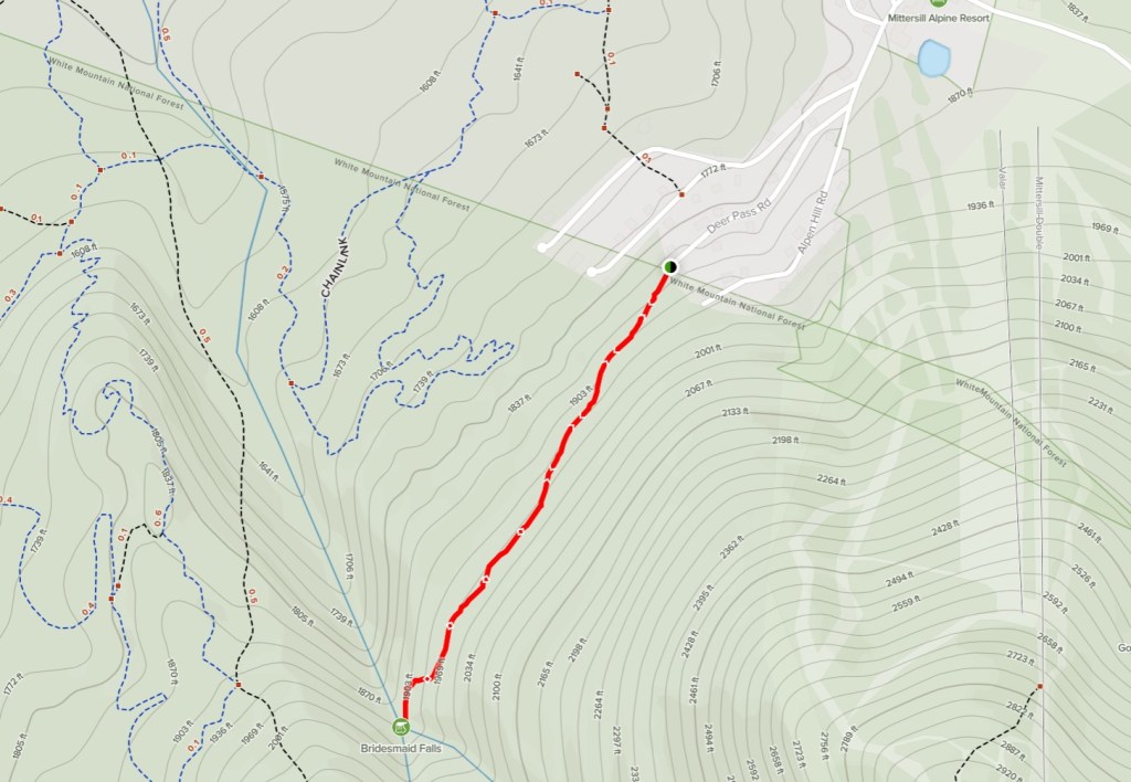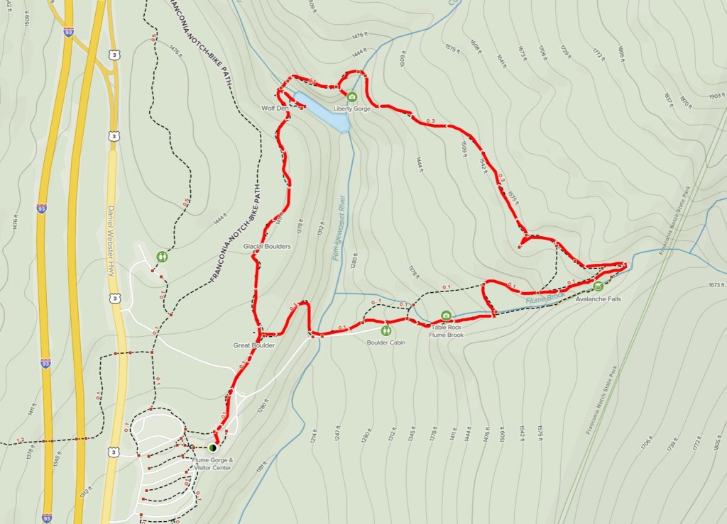 do wodospadu Avalanche falls, spływających z wielkim hukiem z 15 metrowej półki skalnej. Tu kończy się najbardziej widowiskowa część szlaku, (która jest najczęściej odwiedzanym miejscem w całej Nowej Anglii). Wodospad Avalanche uformował się podczas wielkiej powodzi w 1883 roku.