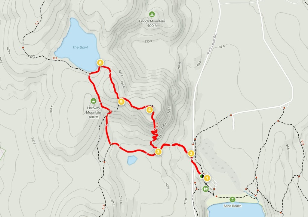 Szlak zaczyna się na końcu drogi Deer Pass Road. Idąc wąską dróżką dochodzę do rozwidlenia dróg i skręcam w prawo. Następne rozwidlenie to skręt w lewo. Charakterystycznym punktem jest tu kamień z namalowanymi czerwonymi kwadratami i właśnie w tym miejscu należy skręcić w lewo. Na http://www.alltrails.com mapa szlaku jest trochę niedokładna – pokazują po prostu prostą linię bez żadnych skrzyżowań.