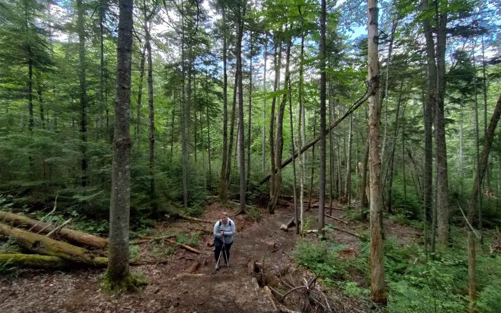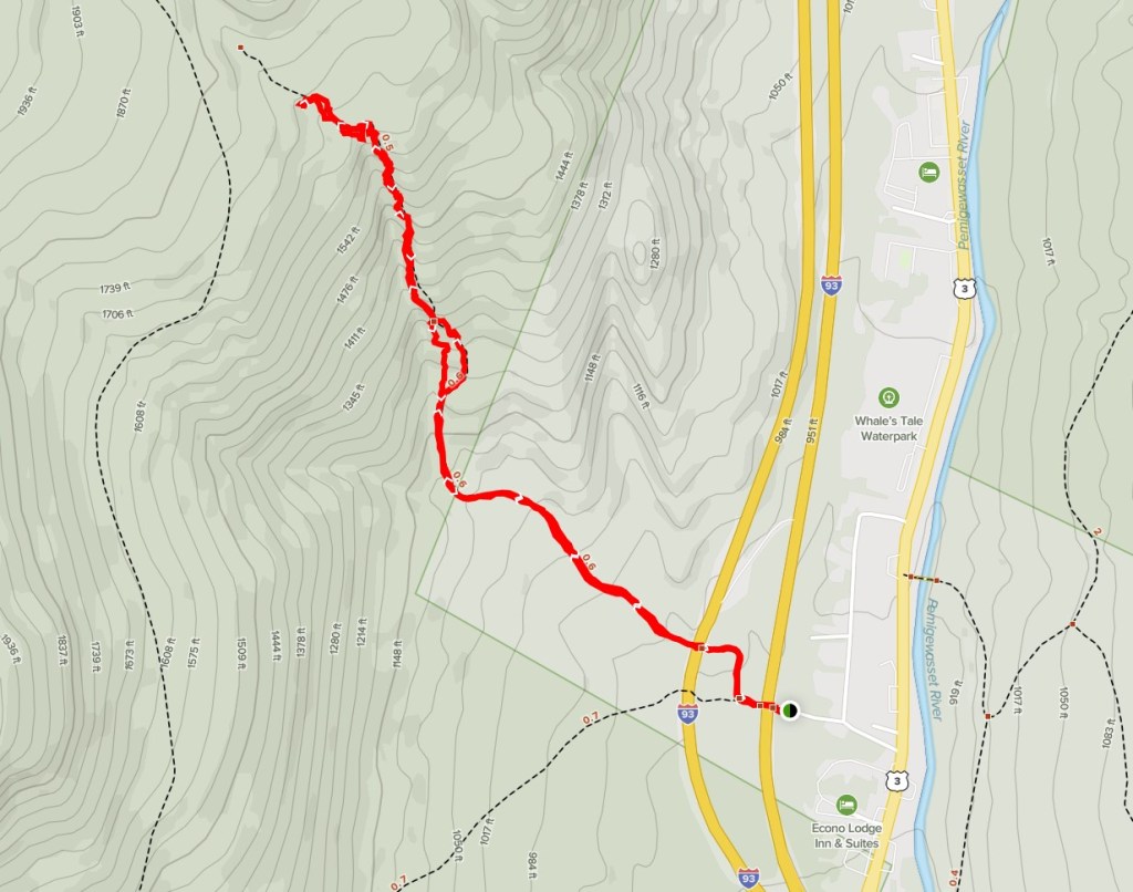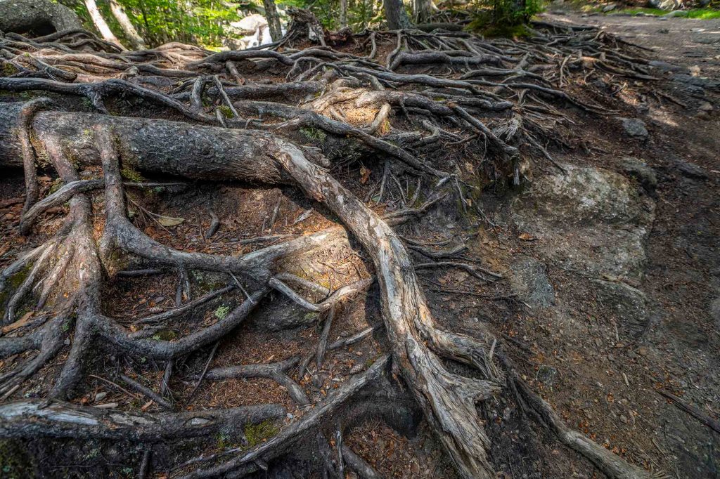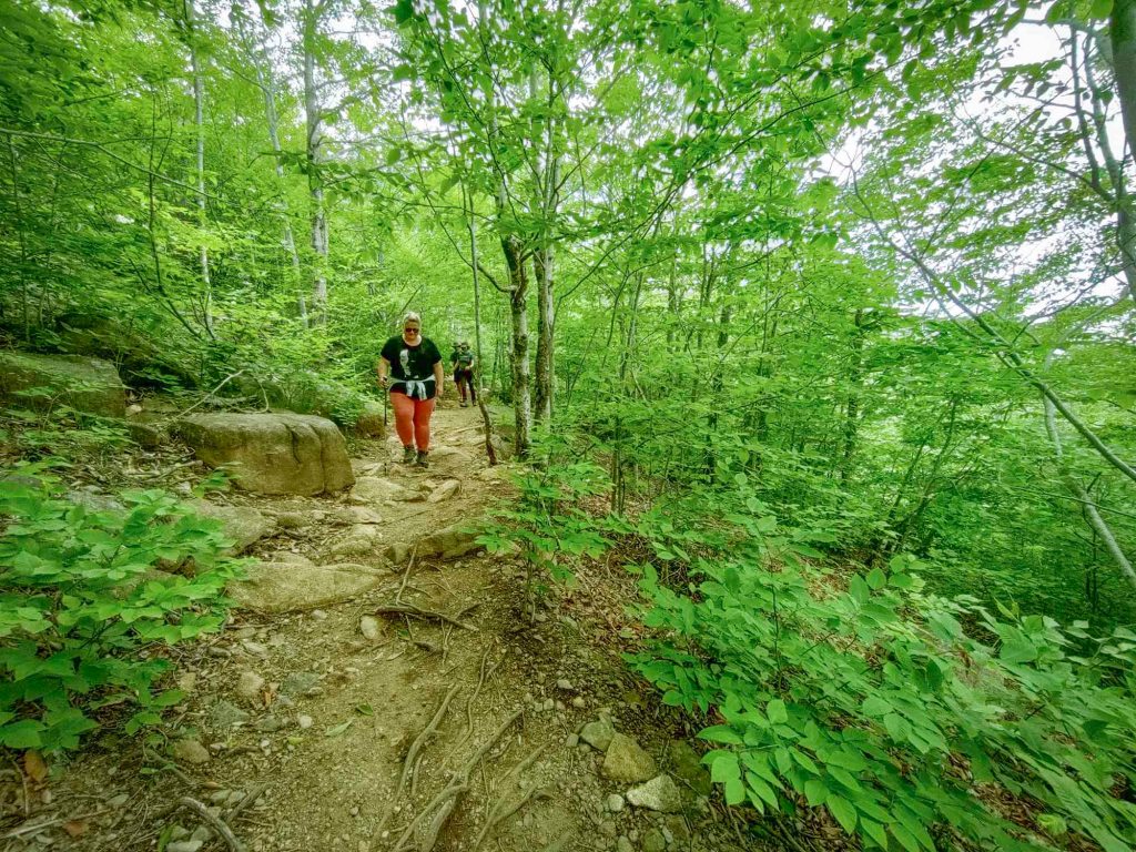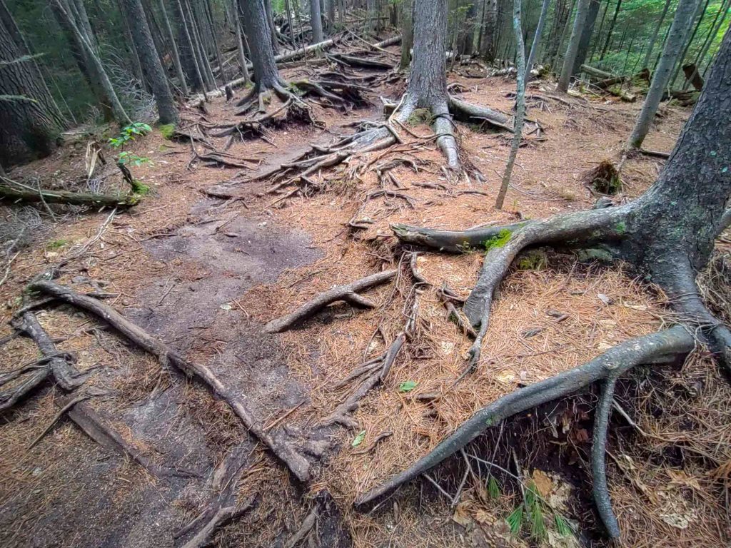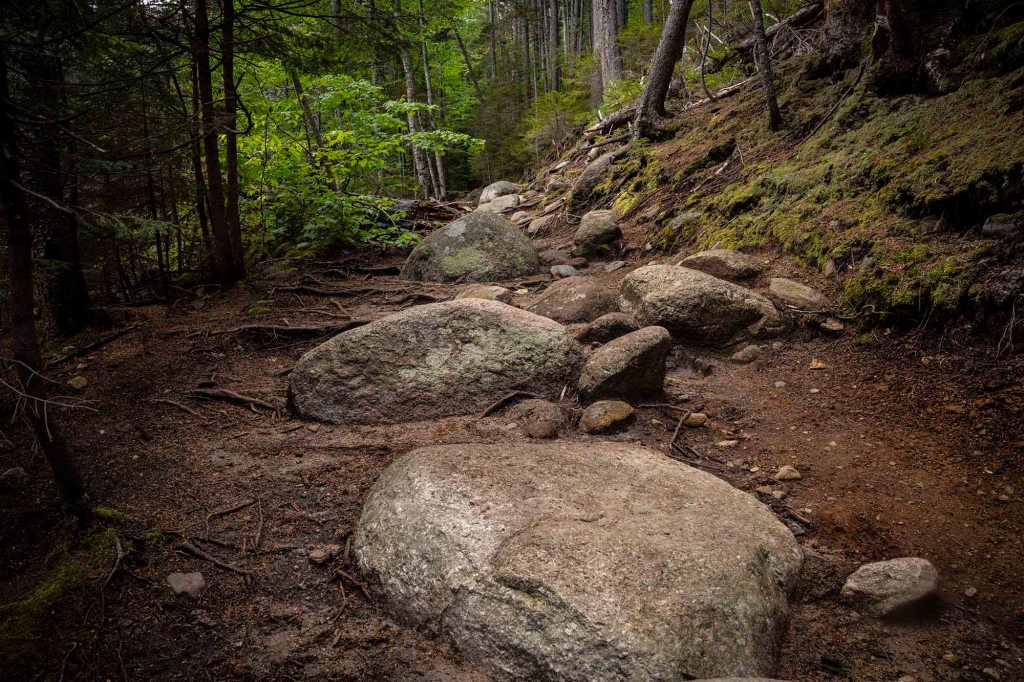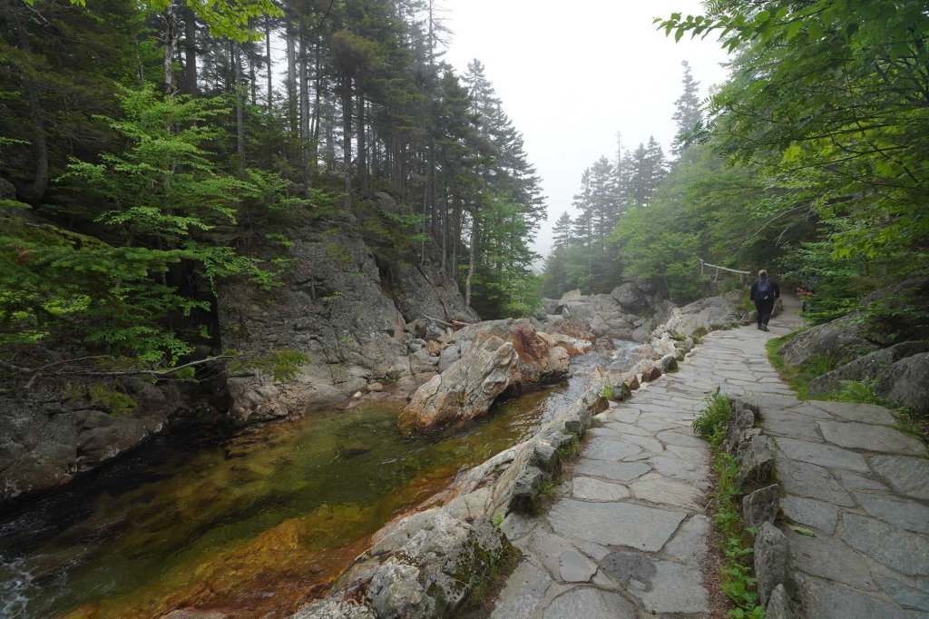Wychodzi on z olbrzymiego parkingu przy Joe Dodge Lodge/Pinkham Notch Visitor Center i szeroką leśną pełną stercząccyh korzeni ścieżką (wzdłuż rzeki Cutler) prowadzi nas stopniowo do góry.