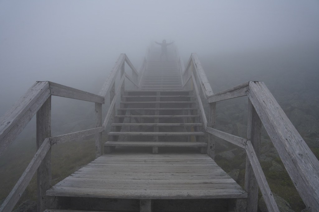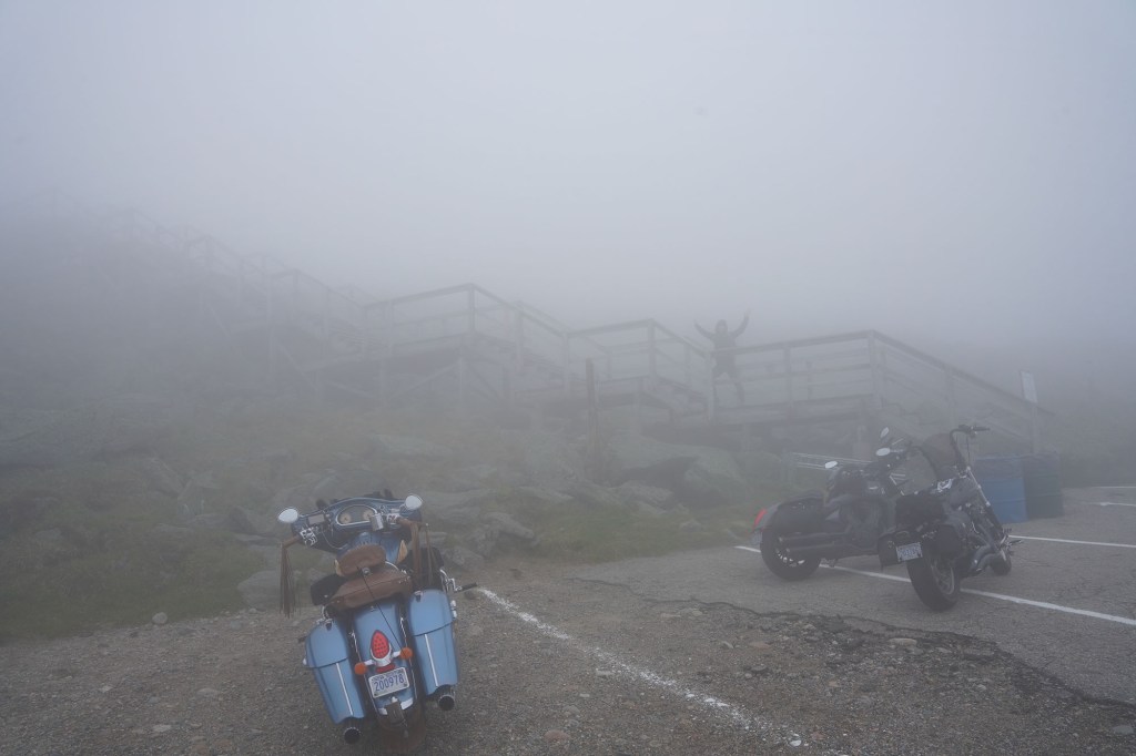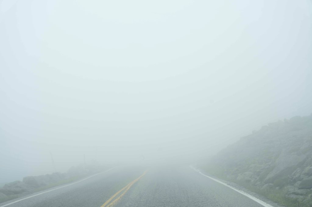 Schodzimy ze szlaku i jedziemy w kierunku Mt. Washington. Generalnie jest klika opcji, żeby dostać się na jego szczyt. Można wejść szlakiem turystycznym, wjechać samochodem (opłata $39/auto plus każda osoba dorosła znajdująca się w aucie $14), busem ($45/osoba) lub nadal czynną (pierwszą na świecie) kolejką zębatą Cog Railway ($99/osoba). Wybieramy opcję wjazdu samochodem (9am-6pm) (policzono nas $67) i na kierowcę ochotnika zgłasza się Magda 😊. Zaczynamy mozolne wspinanie się do góry … początkowo zwykłą leśną drogą….ale adrenalina znacząco rośnie w momencie kiedy przekraczamy granicę drzew i samochód zaczyna, momentami balansować nad przepaściami….. dochodzi do tego gęsta mgła….. i siąpiący deszcz.
