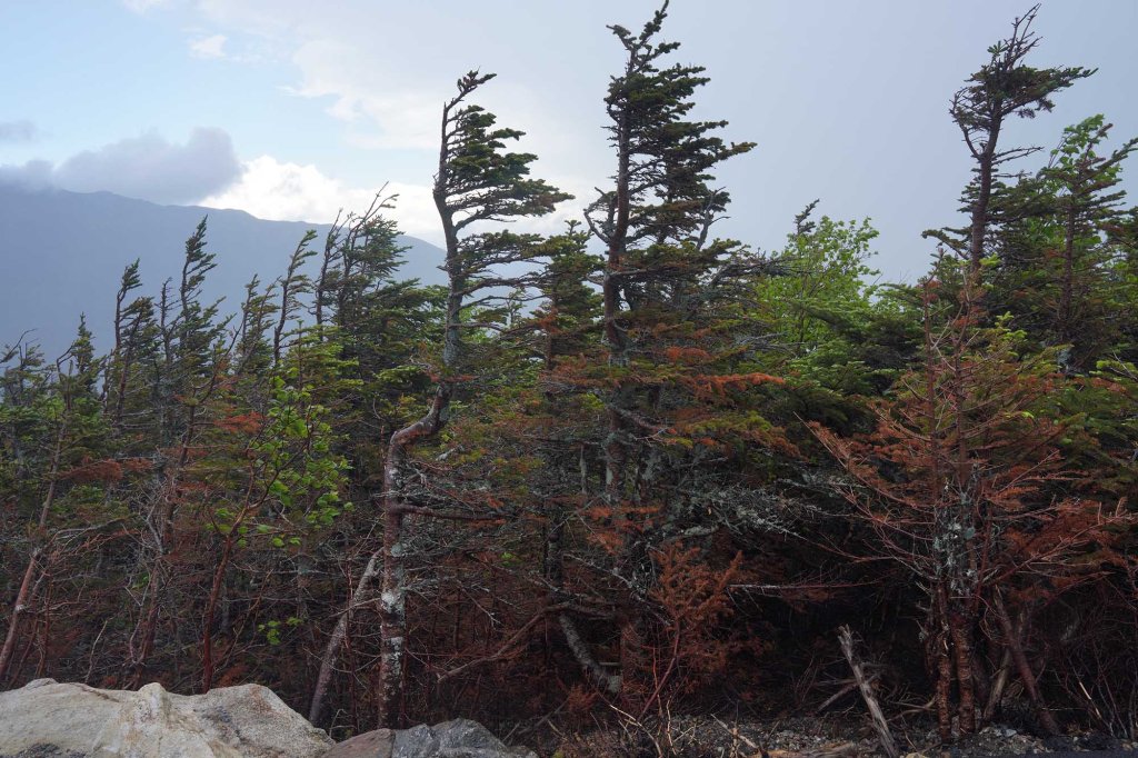 Pasmo Prezydenckie, którego najwyższym szczytem jest właśnie Mount Washington, biegnie z północy na południe. W Stanach Zjednoczonych wiatry wieją z zachodu na wschód ….i wieją tak w zasadzie bez żadnych przeszkód przez tysiące kilometrów prerii. Dobiegając do wznoszącego się prawie 2,000 m n.p. m szczytu Washingtona napotykają na stromą przeszkodę.