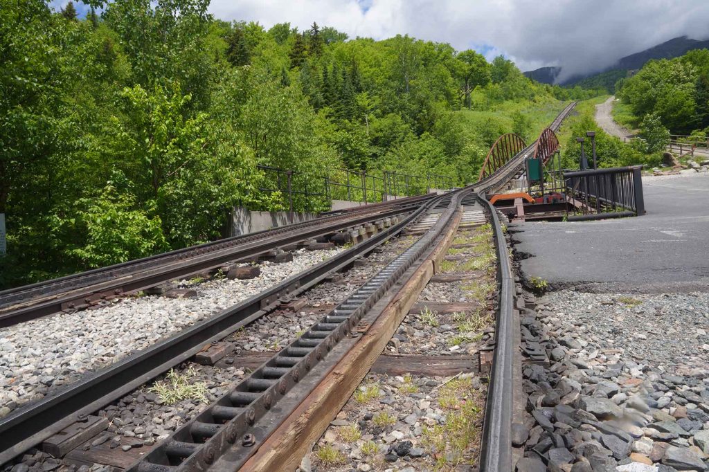 Dalej jedziemy na skróty szutrową drogą – Jefferson Notch Road prowadzącą przez gęsty las, i podjeżdżamy do stacji kolejowej Cog Railway.