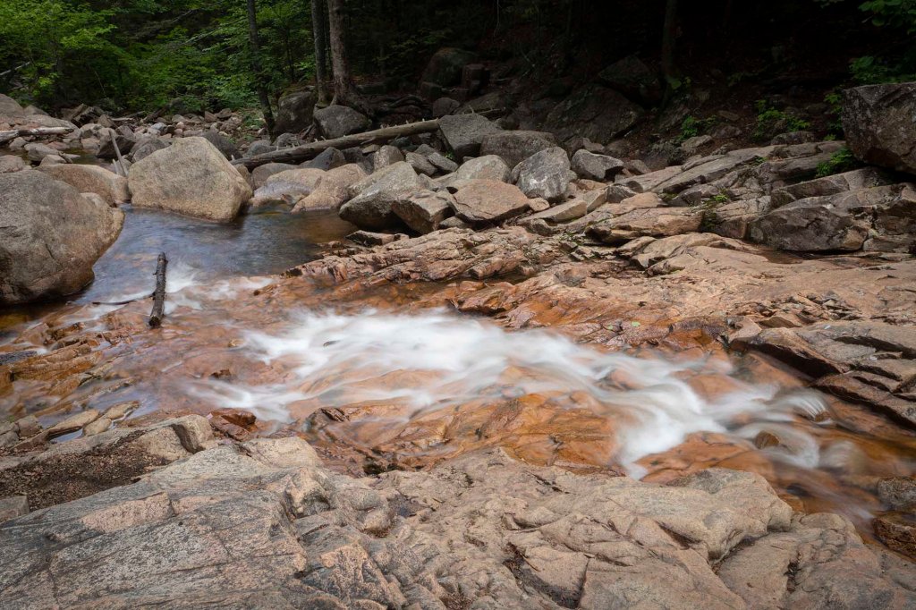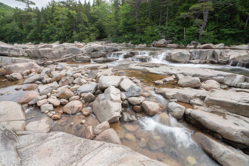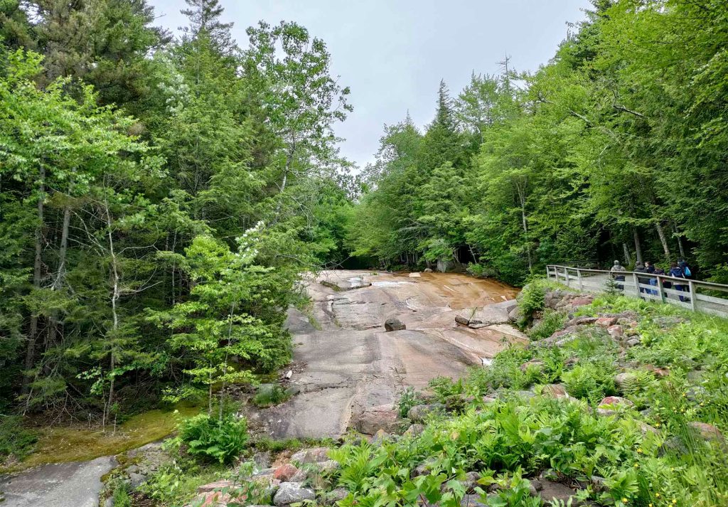 …. i dalej wspinamy się pod górkę do Table Rock falls – wygładzonej granitowej wielkiej skały (długość 150 metrów, szerokość 20 metrów), po której płynie wąską strugą rzeka Pemigewasset.
