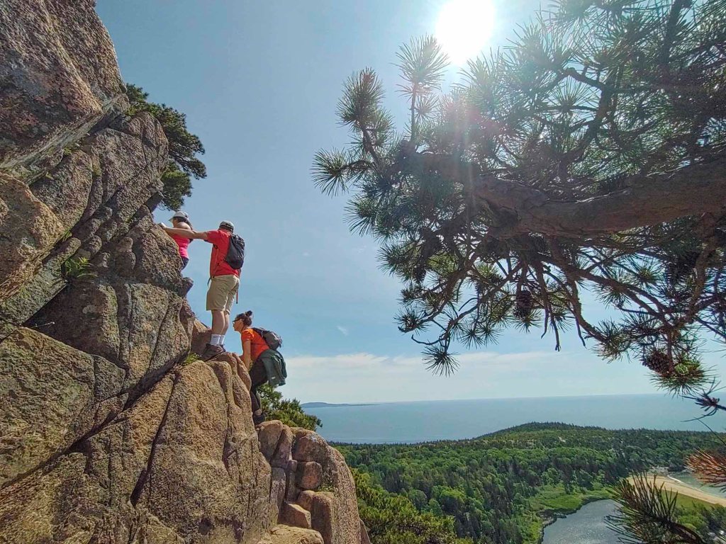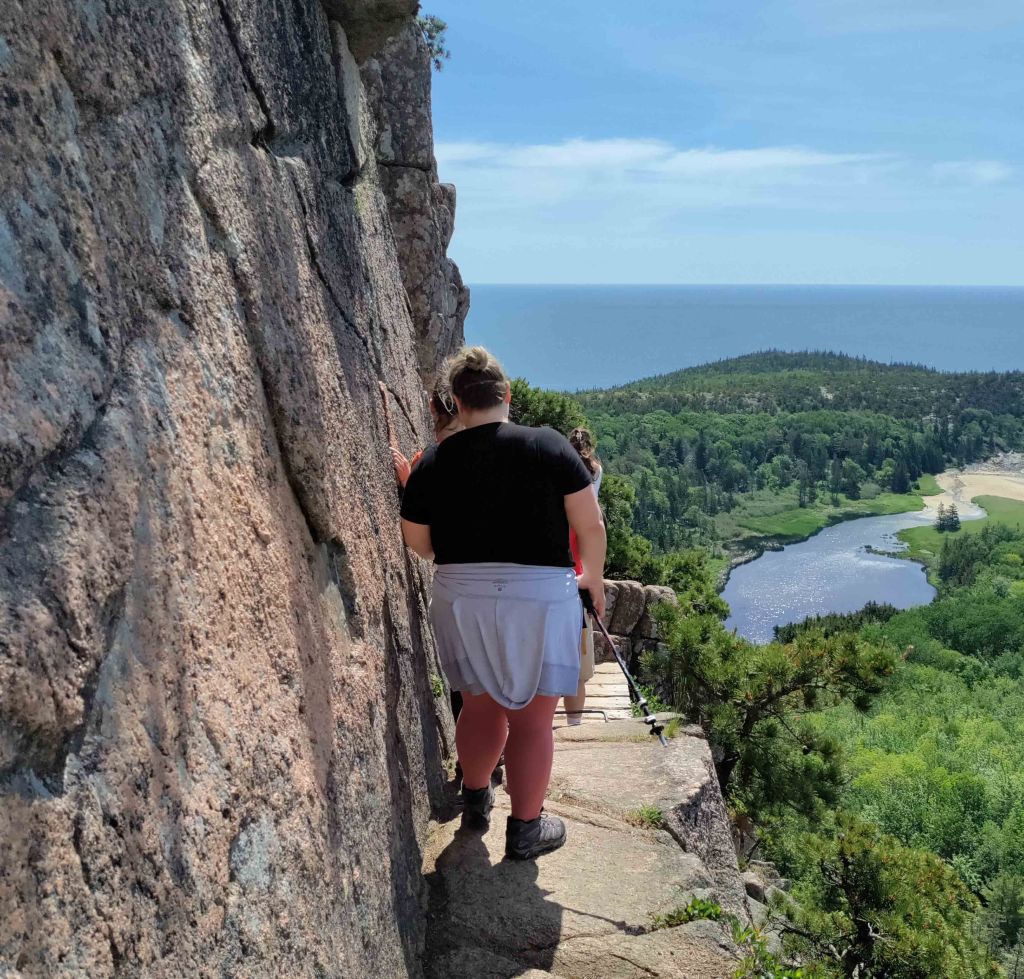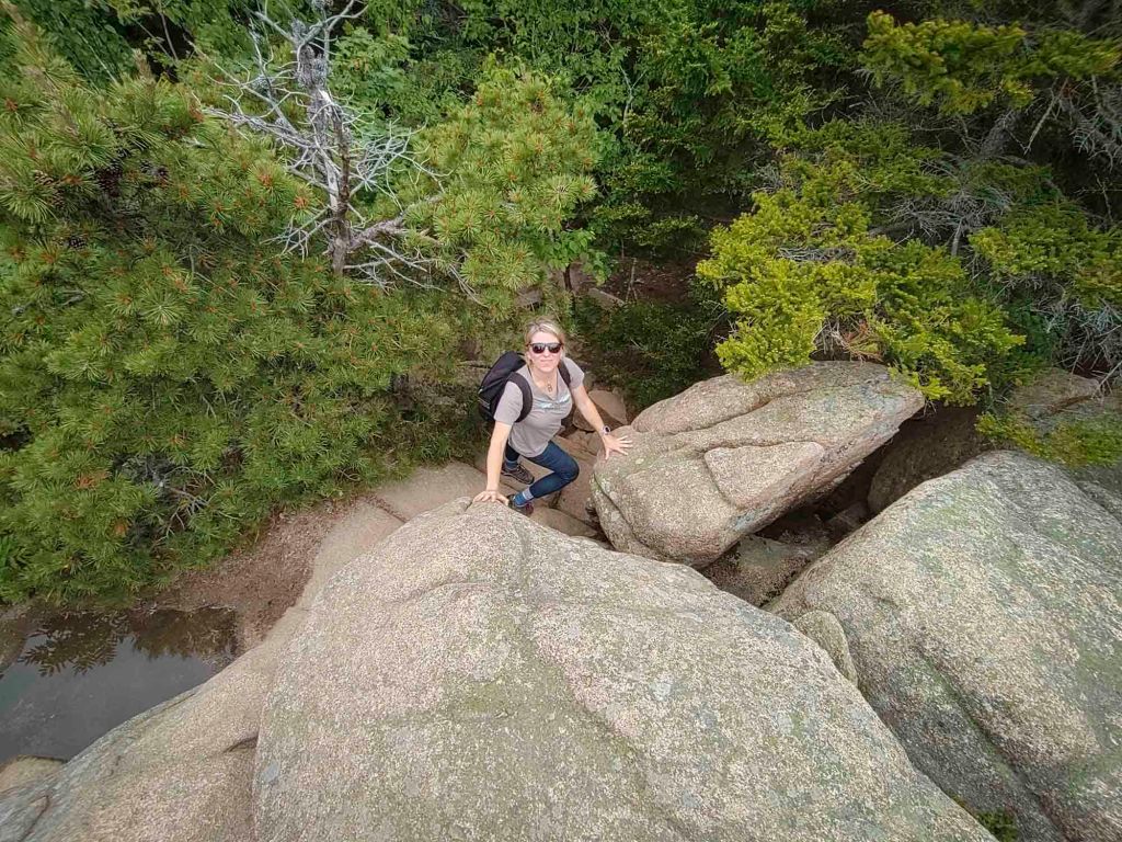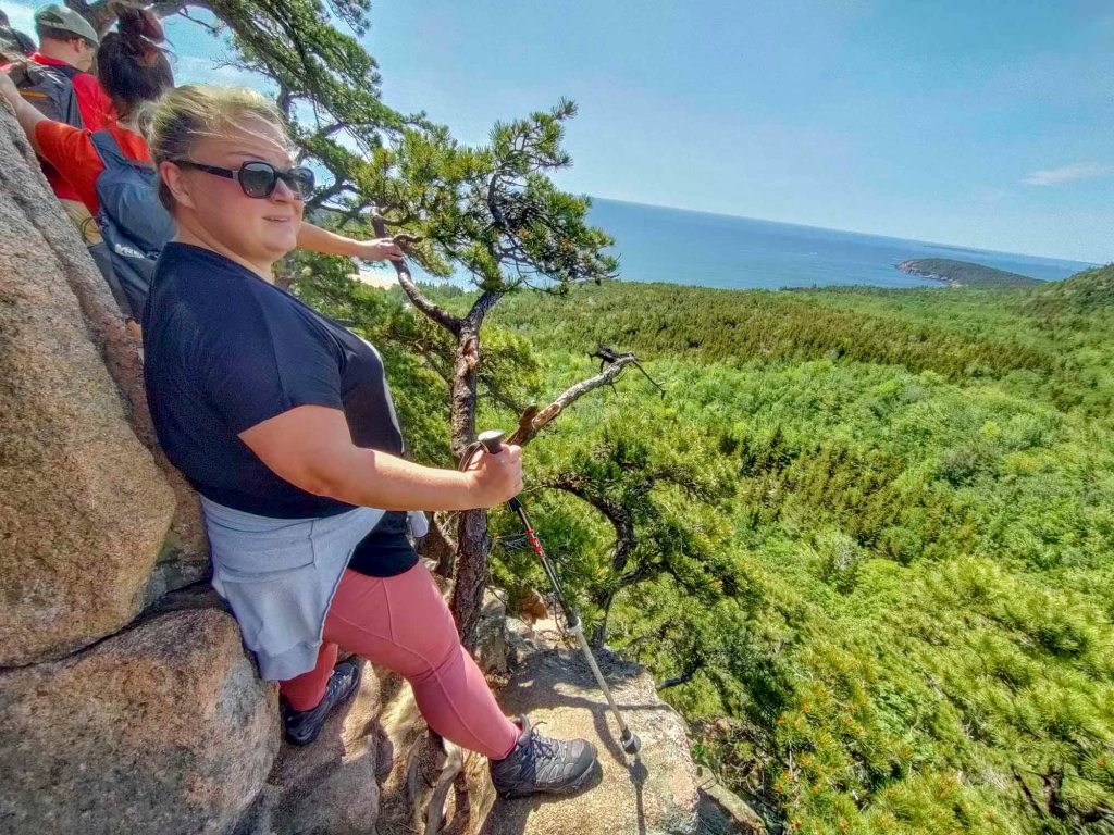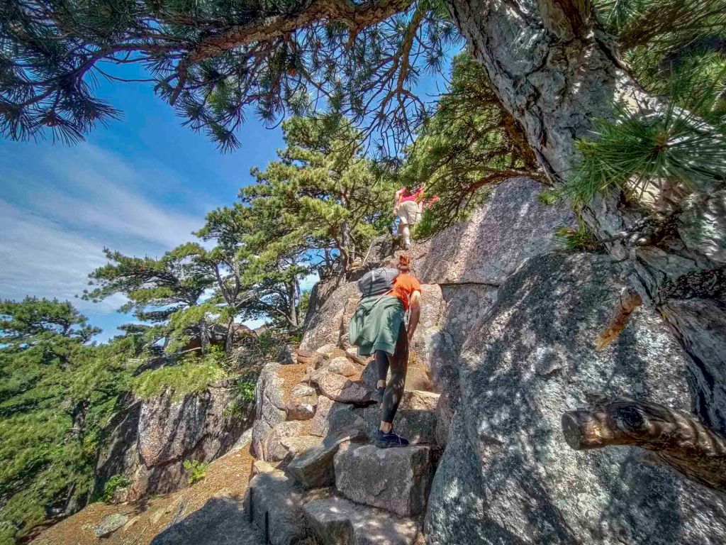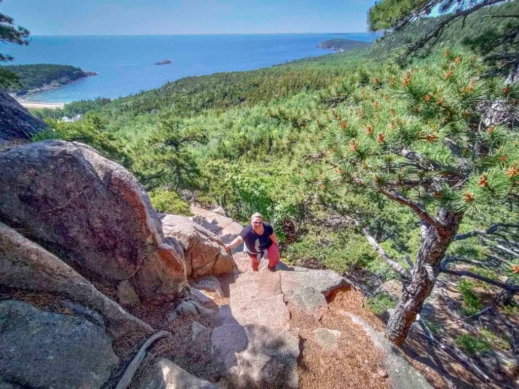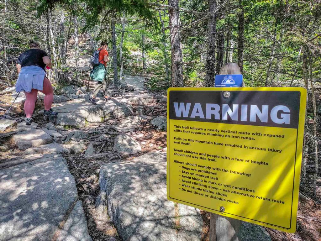 Szlak ten jest ikoną parku Acadia i każdy kto chce poczuć trochę adrenaliny musi zdobyć się na odwagę i go przejść …lub raczej wspiąć się po jego pionowych skałach. Długość szlaku to jedynie 1,5 mili… ale jego nachylenie w części początkowej nie napawa optymizmem. Oznaczony jako „hard” na alltrails.com oddaje dosłownie znacznie tego słowa. Szlak wychodzi z parkingu Sand Beach, który zapełnia się bardzo szybko (od bardzo wczesnych godzin porannych) i naprawdę ciężko jest znaleźć tam miejsce nawet rano. Na szczęście zarząd parku pozwala parkować auta wzdłuż drogi… i to właśnie tam znajdujemy miejscówkę. Wchodzimy do lasu i początkowo spacer nie wymaga praktycznie żadnego wysiłku fizycznego. Dochodzimy do rozwidlenia i skręcamy w prawo, gdzie od razu wita nas ostrzeżenie o tym, że szlak prowadzi po pionowej skale i potrzebne są umiejętności wspinaczkowe…..