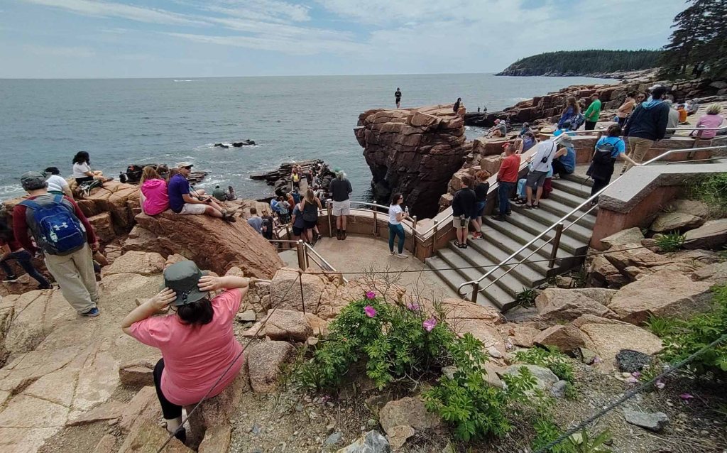 Thunder Hole niestety nie “wybucha” przed nami… obserwujemy jedynie dziesiątki usadowionych na granitowych schodach turystów oczekujących na spektakl….. na który trzeba poczekać jeszcze ze 3 godziny.