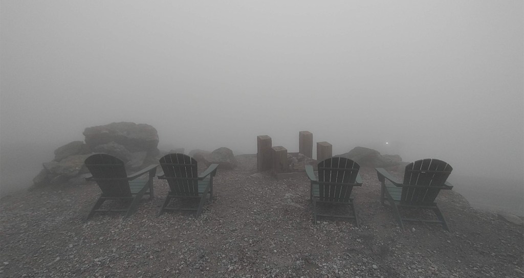 Mgła i siąpiący deszcze praktynie redukują widoczność do kilku metrów. Wysokość Bald mountain to tylko 682 m n.p.m i nie jest ona może imponująca…. ale przy dobrej pogodzie wystarczy by zauroczyć się panoramicznym widokiem. I na tym puncie kończy się nasza wspaniała wycieczka po szlakach.