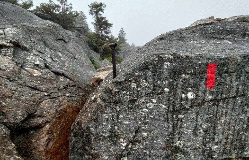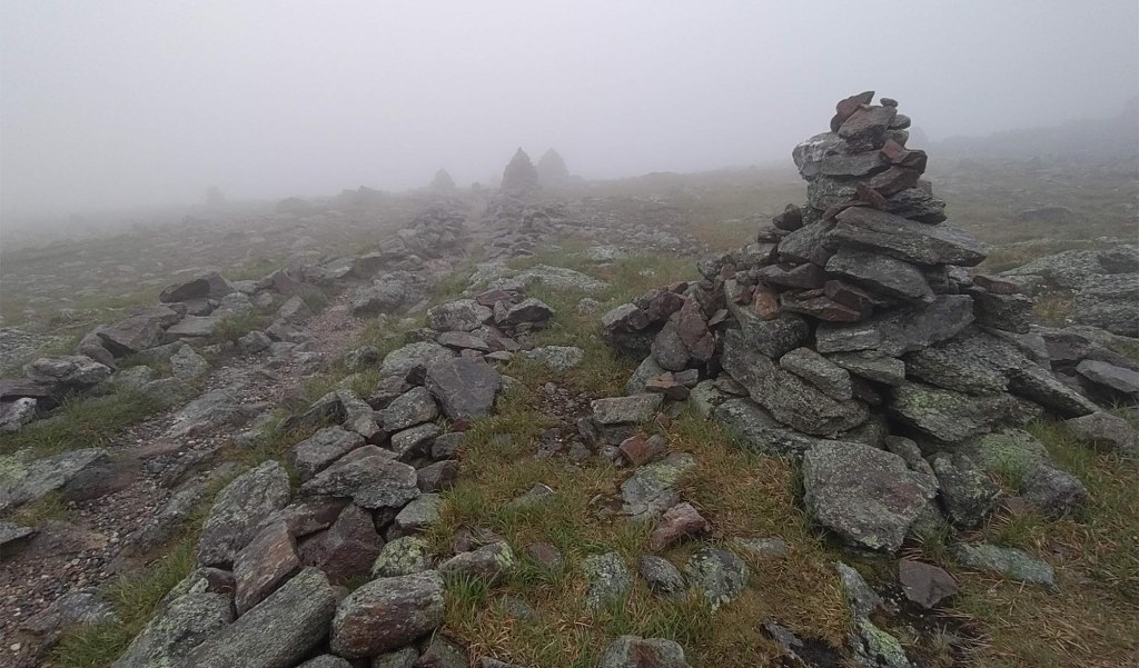 Droga oznaczona jest czerwonymi strzałkami namalowanymi na skałach, więc nie ma możliwości żeby się zgubić, nawet w gęstej mgle.