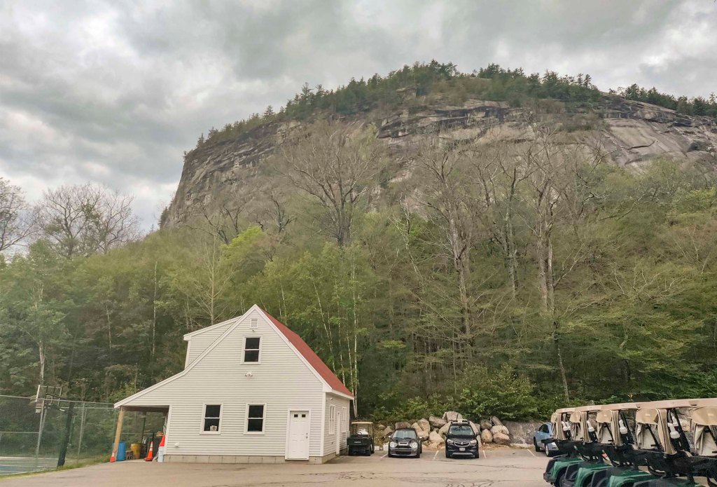 Nad miasteczkiem góruje wielka granitowa skała – Cathedral ledge, na której szczycie znajduje się punkt widokowy, ale niestety droga dojazdowa do niego jest już zamknięta (9am-6pm)… a po obfitym obiedzie żadnej z nas nie chce się już wdrapywać szlakiem pieszym (długość szlaku 2,8 mili).