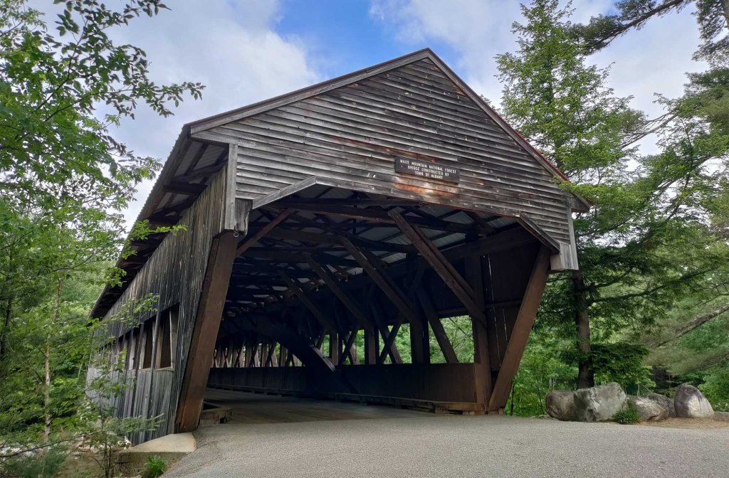 Przechodzimy przez jeden z najstarszych krytych mostów w stanie – Pemigewasset River covered bridge