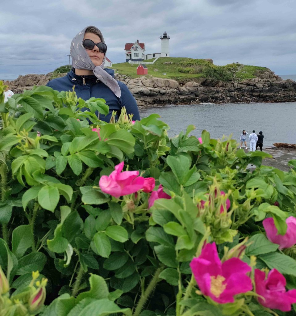 Pierwszy postój to latarnia morska Nubble Lighthouse w York i spotkanie z Queen of England spacerującą po kamienistym wybrzeżu…..w atłasowej chustce w lamy 😊.