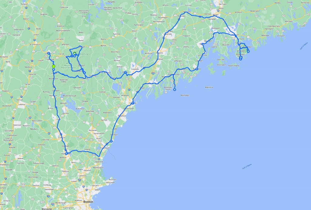 TRASA: Chicago – MAINE: Portland, Pemaquid Point Lighthouse, Rockland Breakwater Lighthouse, Bar Harbor, Acadia national park Cadillac mount overlook trail, Jordan pond, Beehive trail, Sand beach, Ocean Path trail, Thunder Hole, Ship harbor trail),Poland; NEW HAMPSHIRE: New Conway, Honeymoon cover bridge, Glen Ellis falls trail, Crystal cascade trail, Mt. Washington drive, Mount Washington Cod Railway, Washington Hotel, Arethusa Falls trail, Conway scenic railroad, Kancamagus scenic driveway, Saco covered bridge, Albany covered bridge, Lower Falls overlook, Sabbaday Falls trail, Georgiana falls trail, Flume George loop trail, Littleton, Bridesmaid falls, Artist bluff trail & Table mountain trail, Manchester, MAINE: York Beach, Nubble lighthouse, Portland Head lighthouse) – Chicago