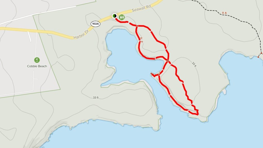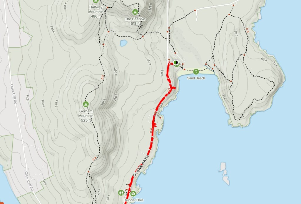 Jest to po prostu ścieżka poprowadzona wzdłuż głównej drogi (Park Loop Road) z kilkoma widokami na oceaniczne skały i ocean.