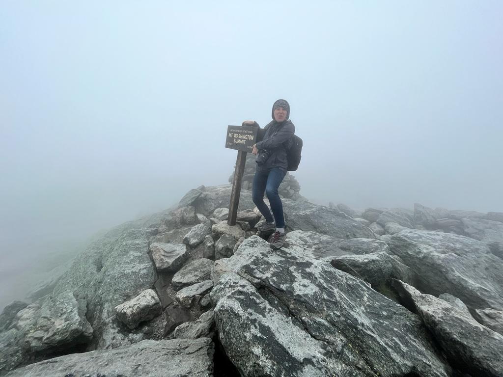 Trzeba się mocno powysilać, żeby zrobić sobie pamiątkowe zdjęcie ze znakiem Mt. Washington….. (trzymając się go uporczywie by nie odfrunąć 😊)