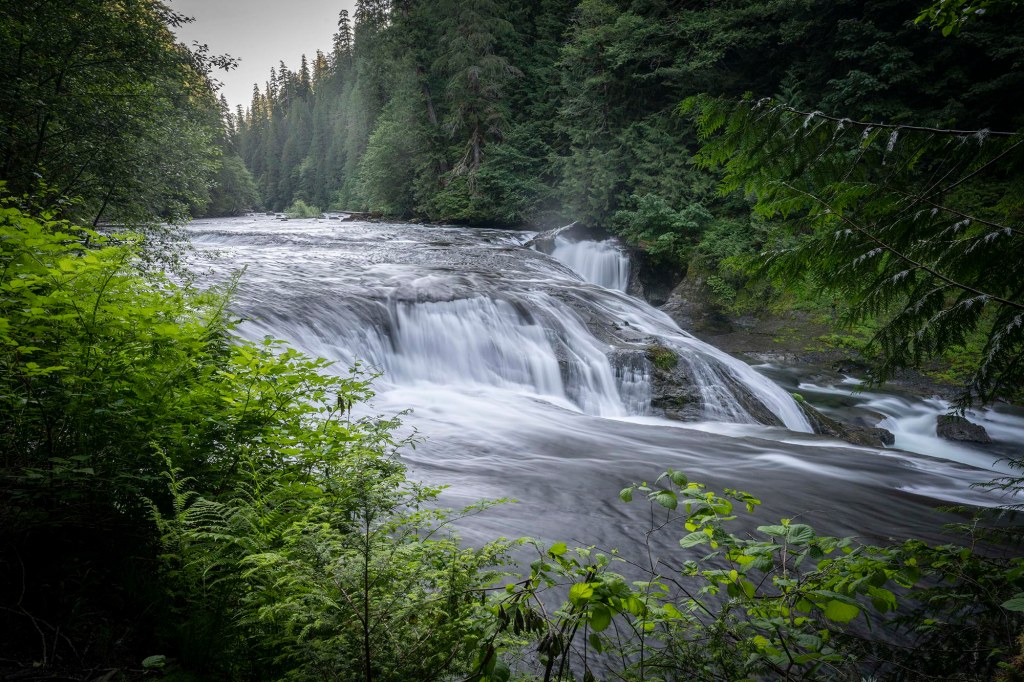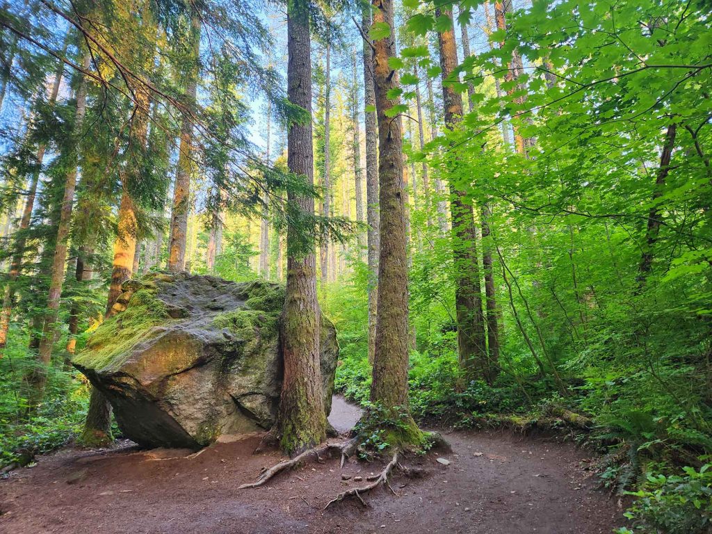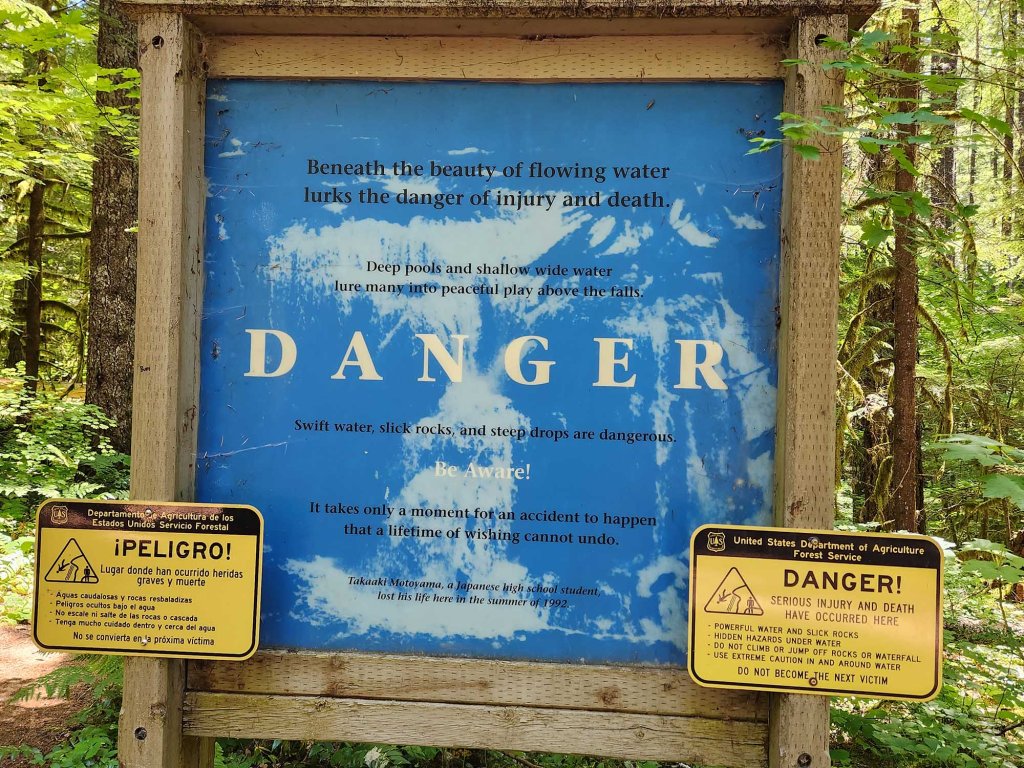 Kolejny szlak to Twin Falls (długość 2,5 mile) znajdujący sie na terenie Ollialie State park ($10/auto lub Discovery Pass $30/rok). O godzinie 10 rano parking jest już kompletnie zapełniony (zakaz parkowania przy drodze). Jest to bardzo popularne miejsce ze względu na łatwość szlaku, co wiąże się oczywiście z dzieleniem wędrówki z tabunami rozkrzyczanych dzieci i ich równie rozkrzyczanych rodziców 🙂