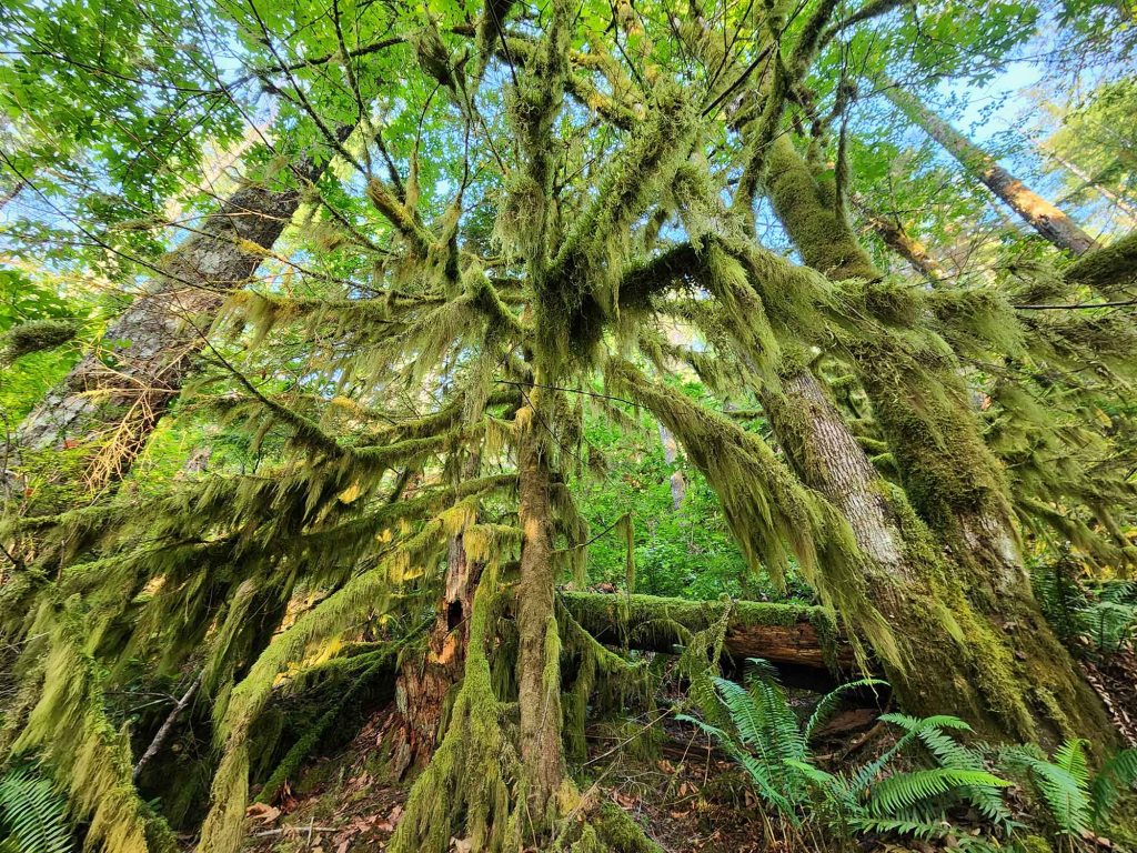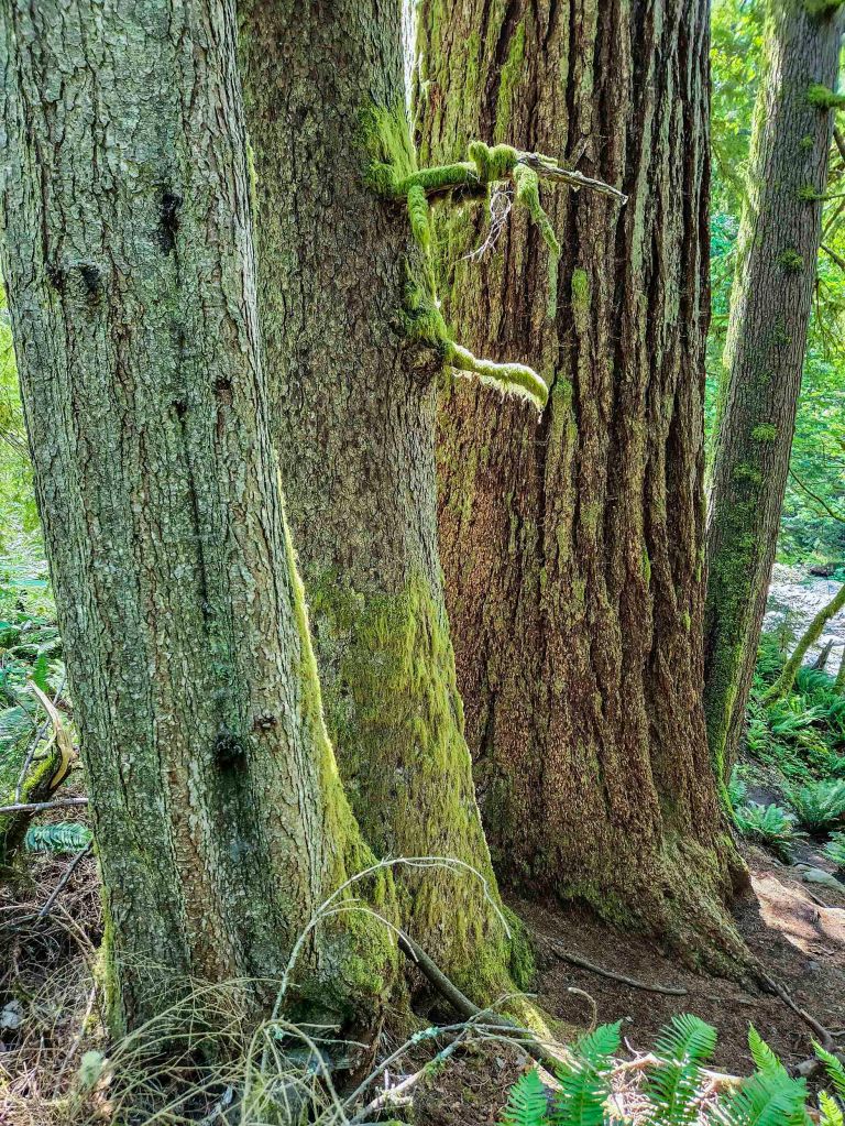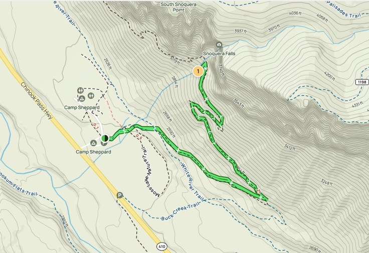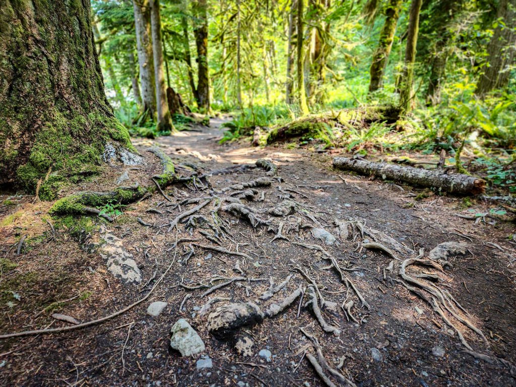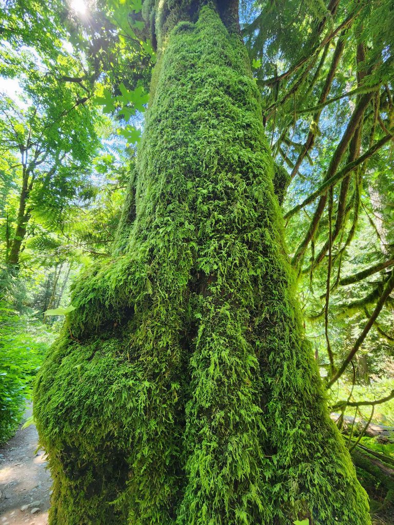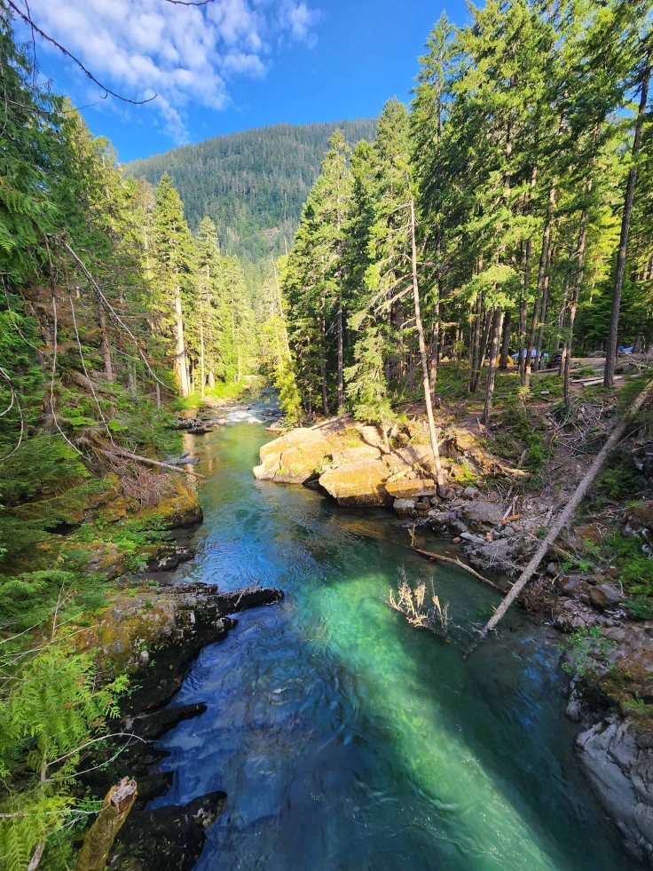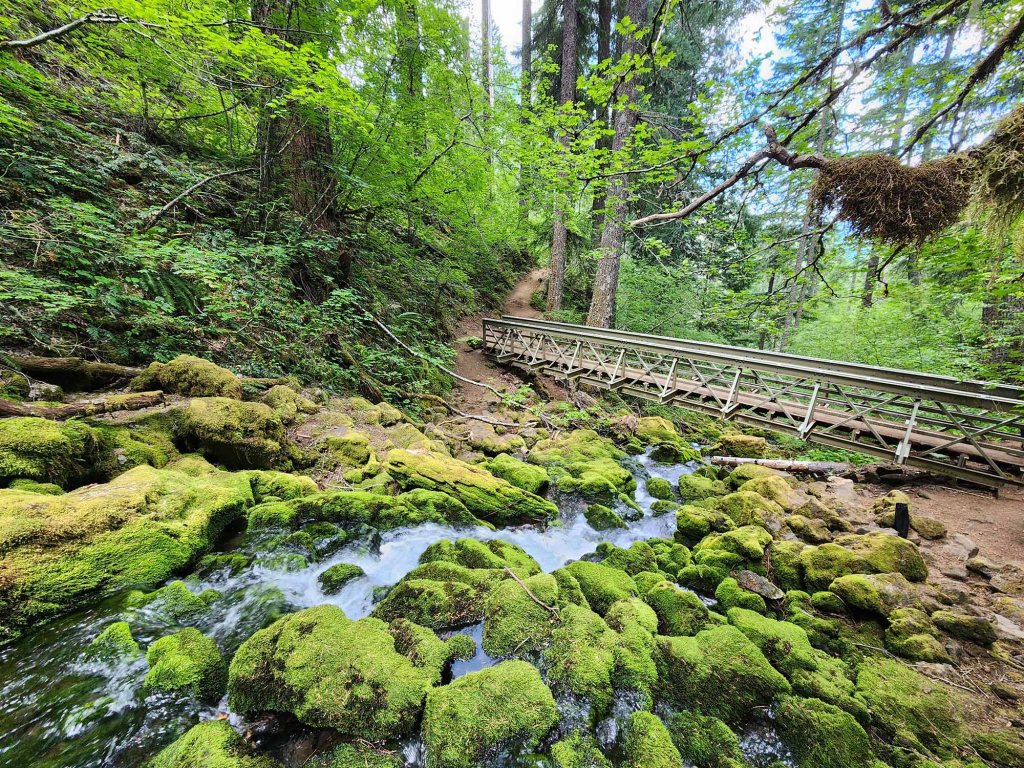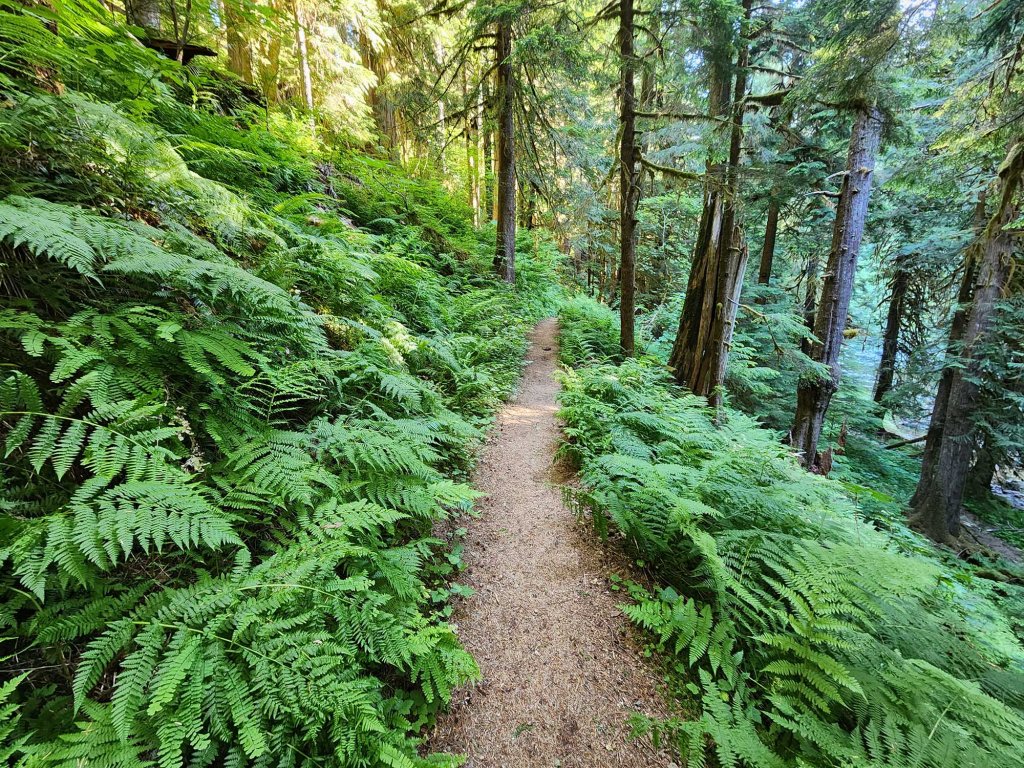 Startuję o godzinie 7 am, co daje mi możliwość rozkoszowania się jego pięknem w zupełnej samotności. Szlak wychodzi ze środkowej części kempingu Ohanapecosh. Idąc zgodnie z ruchem wskazówek zegara przechodzę przez most drogowy prowadzący do północnej części kempingu (nad rzeką Ohanapecosh) i skręcam w prawo wchodząc w gęsty las.