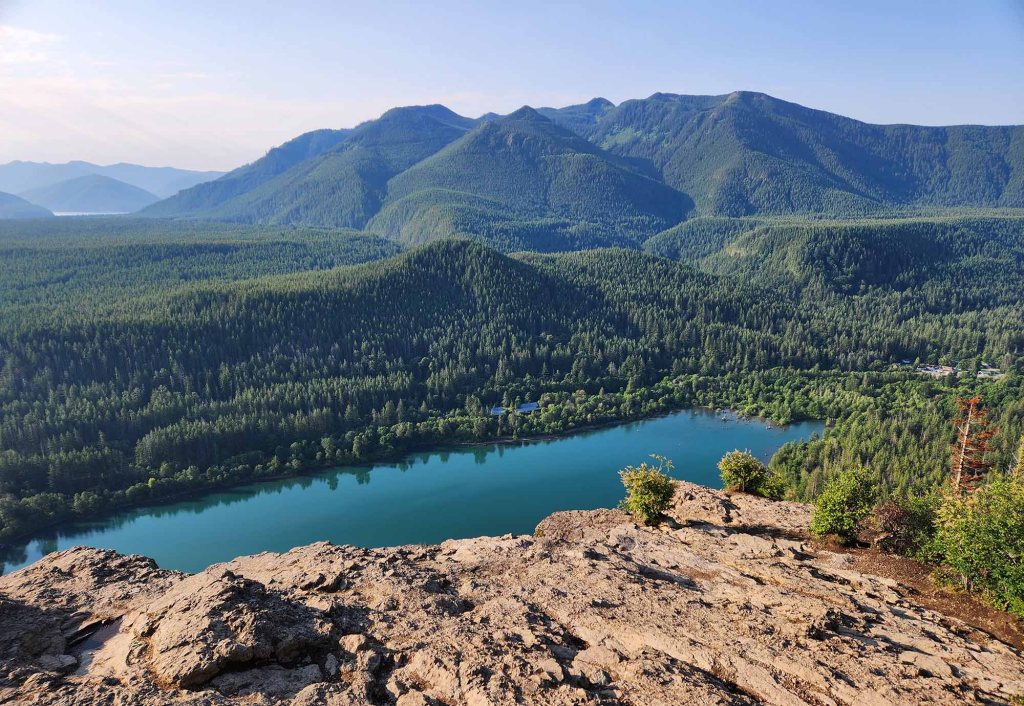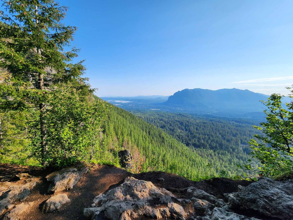 Dzień zaczynam od Rattlesnake Ledge trail (okolice miasteczka North Bend). Szlak o długości 5,3 mili prowadzi stromo do góry na 3 platformy widokowe (przewyższenie 1,459 ft).
