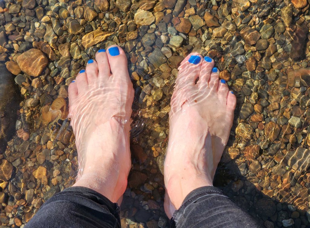 Po zejściu ze szlaku spaceruje sobie chwilkę po plaży i wymaczam zmęczone stopy w chłodnej wodzie jeziora.