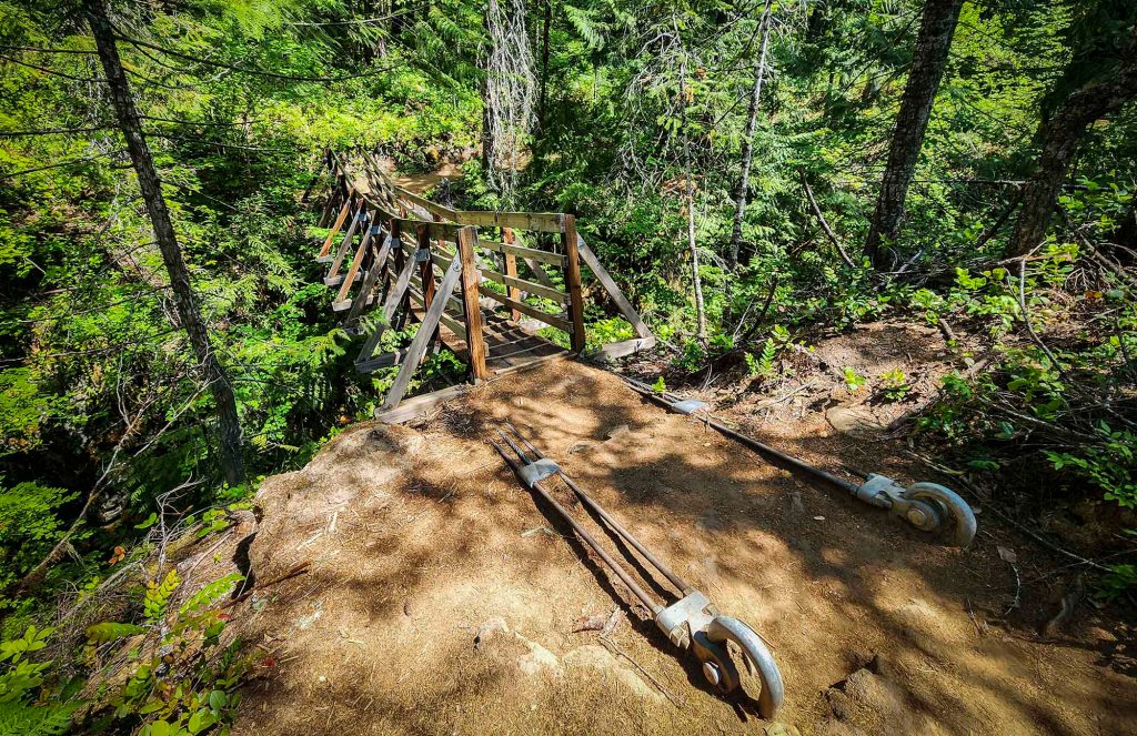 Żeby wrócić do głównego szlaku trzeba po tych samych schodkach wdrapać się na górę i następnie skręcić w prawo. Dalsza część szaku prowadzi nad przez most nad rzeką…