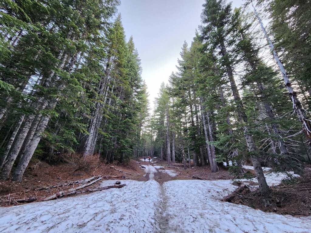 Pierwsza część szlaku jest bardzo prosta, delikatne nachylenie, szeroka ścieżka. Po przejściu pierwszej mili zaczynają pojawiać się zalegające po zimie połacia śniegu.