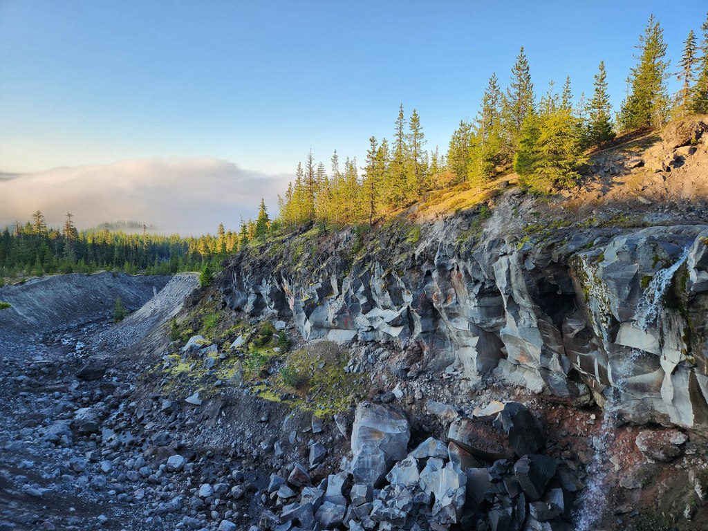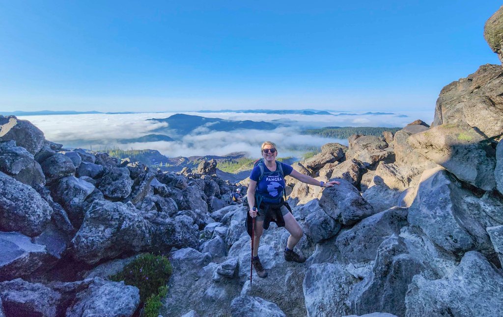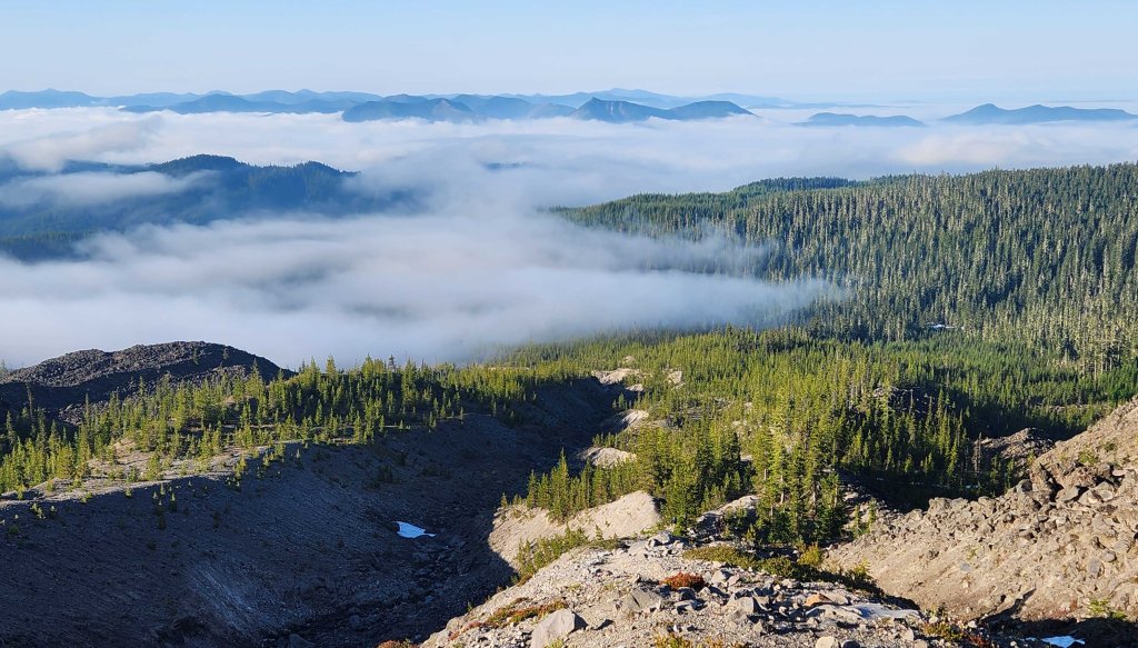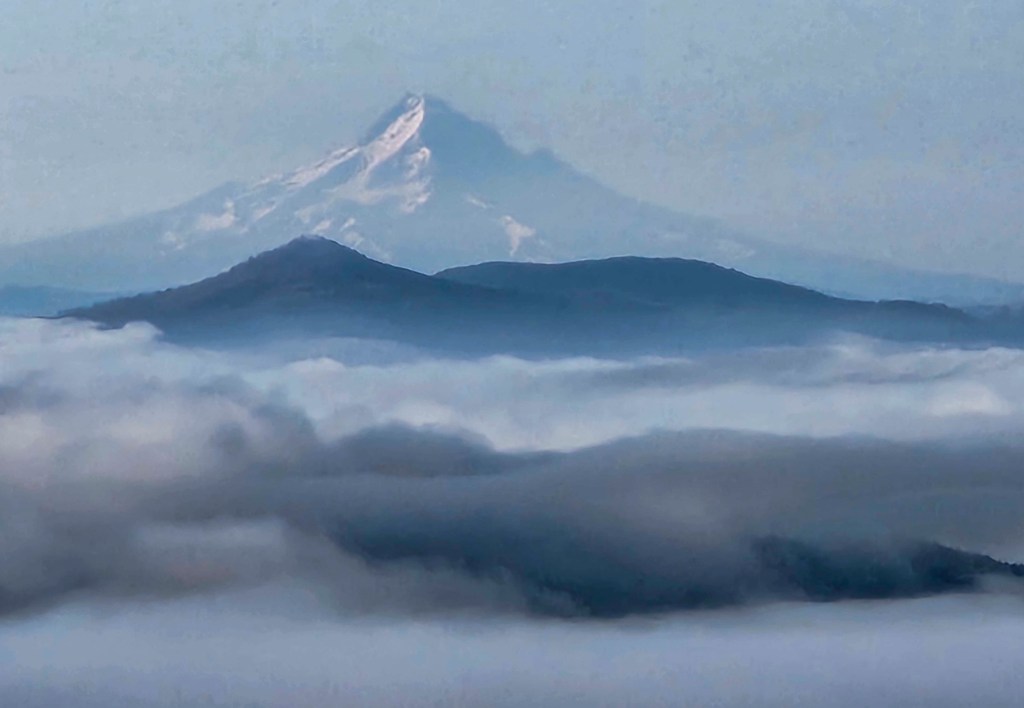 I tu oto przede mną …..widok na Mount Saint Helens (wysokość 2,549 m n.p.m) – zatopioną w chmurach – wydaje się majestatycznie wielka… trochę mnie przeraża fakt, ze jutro mam na nią się wdrapać…. a ona taka wielka 😊