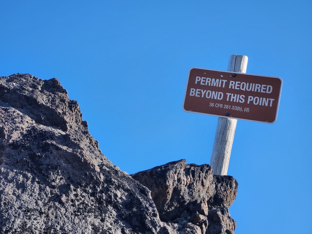 Pobudka 3.40 am. Dojazd do parkingu Marble Mountain Snowpark, rejestracja z podaniem numeru permitu (przy wejściu na szlak) i o godzinie 4.45 am ruszam z wypchanym po brzegi plecakiem. Według alltrails długość szlaku to 10.4 mile, ale większość postujących hikerów podaje dystans 12 mil (przewyższenie 5,718 ft). Na desce rozdzielczej zostawiam wydrukowane pozwolenie na wspinaczkę oraz National Park Pass (plus zabieram kopie permitu ze sobą, bo w razie kontroli muszę go pokazać rangerowi… za jego brak dostaje się mandat). Permit zbobywa się na zasadzie kto pierwszy ten lepszy pierwszego dnia wsześniejszego miesiąca. A więc na dzień 24 czerwca polowanie na wejściówkę zrobiłam 1 maja o 9 am czasu chicagowskiego. (11 minut poźniej permity na weekend były już wszyskie wykupione – koszt to $15/osoba plus $6 opłata manipulacyjna). Jest jeszcze ciemno więc latarka czołówka jest bardzo przydatna.