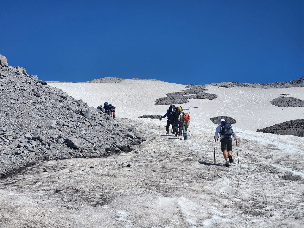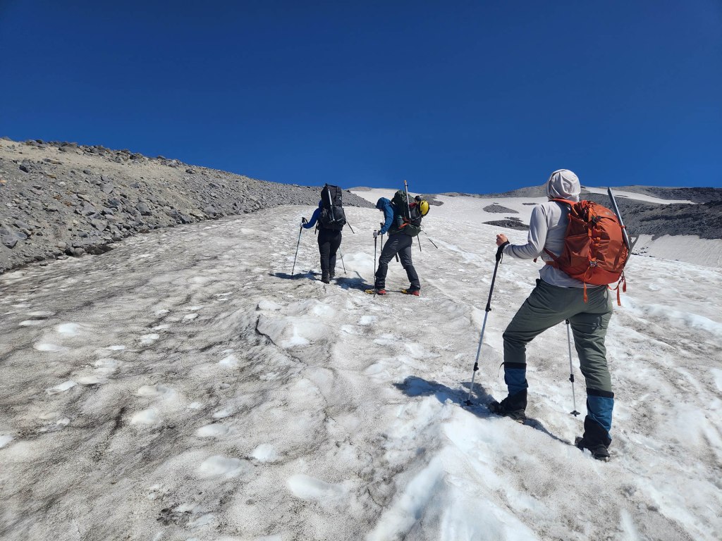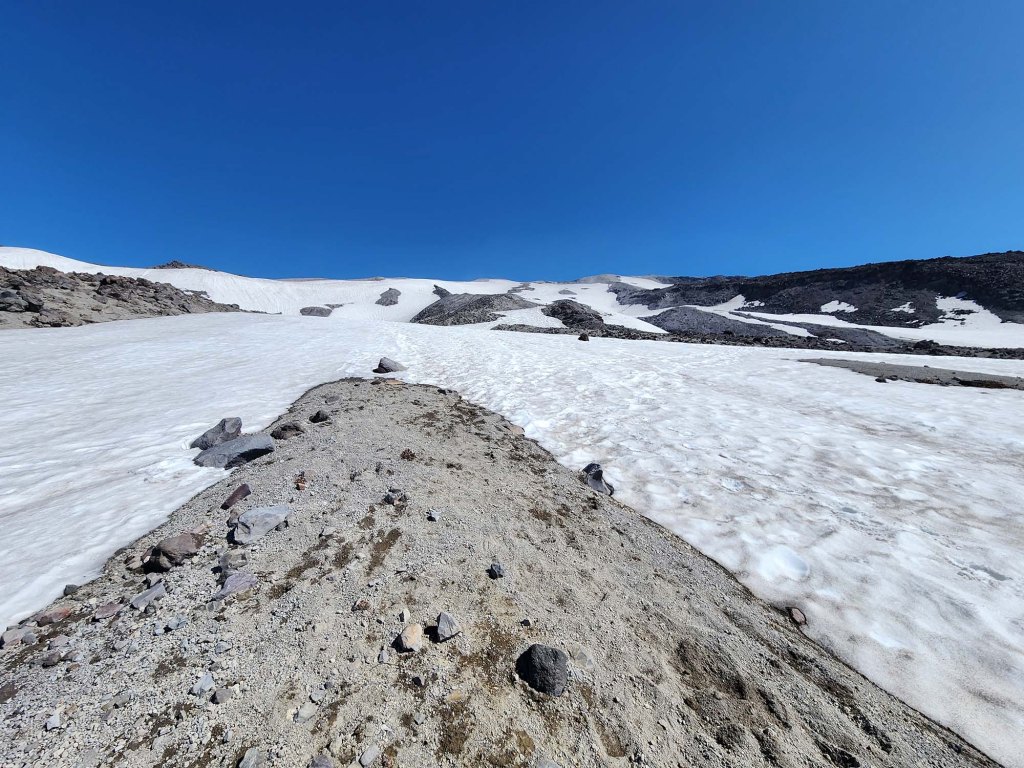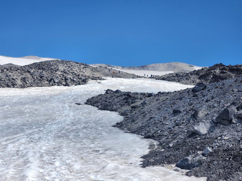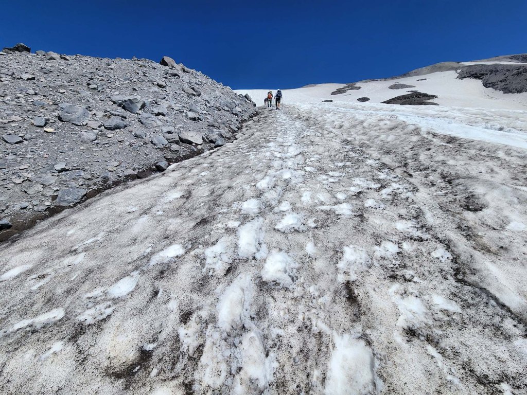 Wejście letnie (z Climbers Bivouac) jest jeszcze zamknięte – tzn. droga dojazdowa do wyjścia na szlak jest zamknięta ze względu na duże ilości zalegającego śniegu (otwierają ją z regóły w pierwszej połowie lipca).