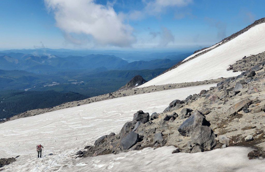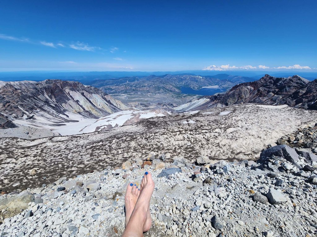 Kilka dni obcowania z przyrodą, trochę wysiłku fizycznego by wdrapać się na parę szczytów, trochę wytchnienia od pędzącego życia…. Fajnie jest tak poprostu uciec od codzienności by pobyć z samym sobą, z dobrą książką i szumiącym potokiem, na mało uczęszczanej ścieżce w gęstymm, pachnącym lesie. W czerwcu nie ma tu jeszcze wielu turystów, (dużo dróg jest zamkniętych ze wględu na zalegający na nich śnieg)….. Można więc cieszyć się naturą w zupełnej samotności …. Jednym z moich głównych celów tej wycieczki było wejście na Mount St. Helens – wulkan, który 43 lat temu pokazał swoje prawdziwe oblicze…. a jego wybuch okazał się największą katastrofa wulkaniczną w historii Stanów Zjednoczonych.
