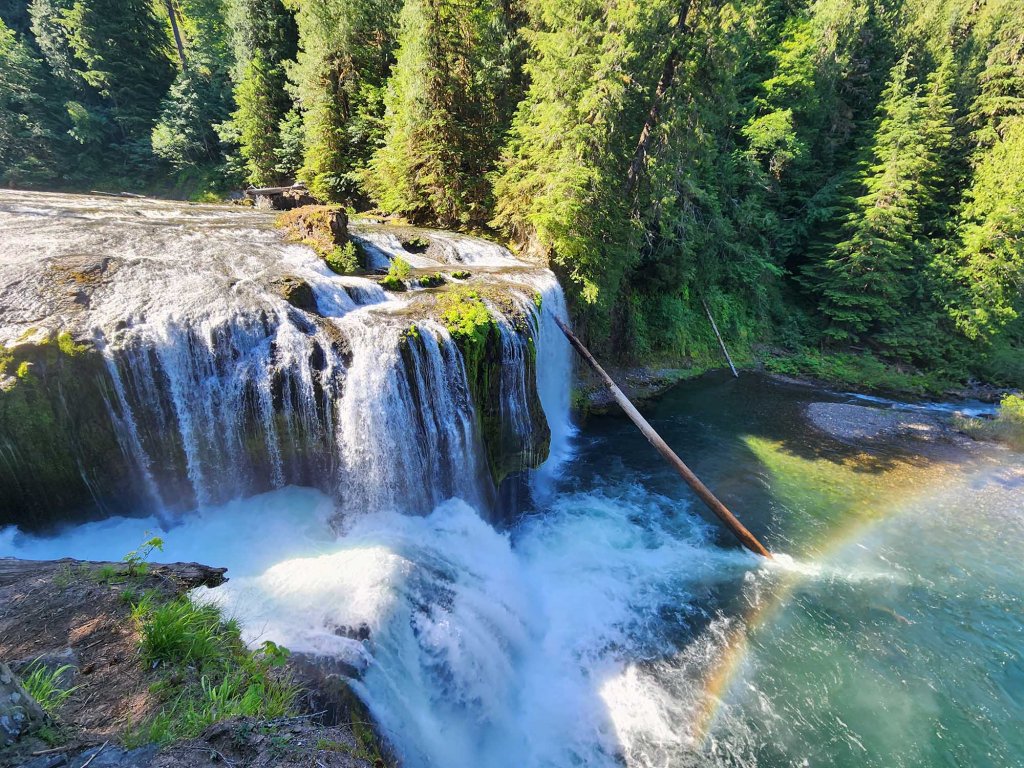 i podchodzę kawałeczek jeszcze stromiej w górę….. na wyższy punkt widowkowy na Upper Lewis Falls z gratisową tęczą….