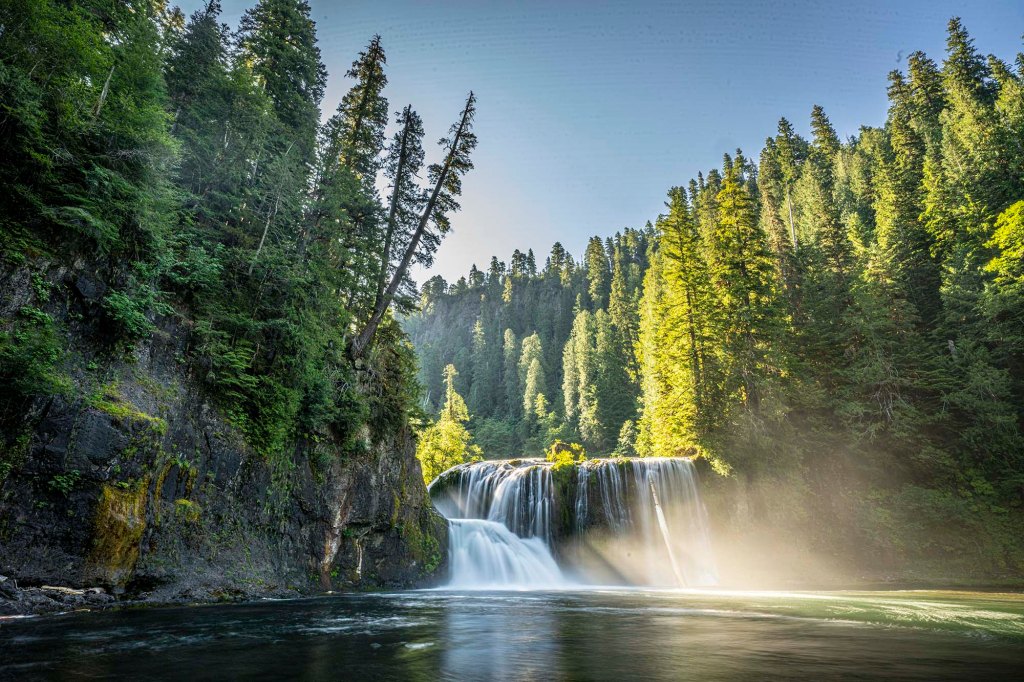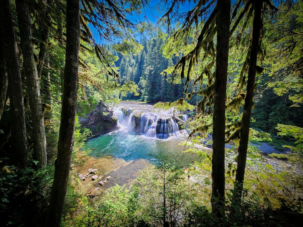 O świcie wyjeżdżam w kierunku Lewis River Recreation Area. Jest to bardzo popularne wśród turystów miejsce, i z tego właśnie powodu wprowadzono tu limitowane miejscówki parkingowe (do zakupienia na http://www.recreation.gov) na 3 parkingi (Lower, Middle i Upper). Ja wykupiłam dwie sztuki na środkowy i dolny parking … tak w razie czego, żeby mieć pewność, że gdzieś znajdę wolne miejsce. (Permit musi być wydrukowany i pokazany rangerowi). Jadę na początek na parking środkowy… gdzie nikogo poza moim autem nie ma… i nie będzie przez najbliższe 2 godziny. (pomimo niedzieli przyjechało tu bardzo mało osób… jak podejrzewam ze względu na zamknięcie jednej z głównych dróg dojazdowych# 25). Idę na szlak zaliczając Middle i Upper Lewis River Falls.