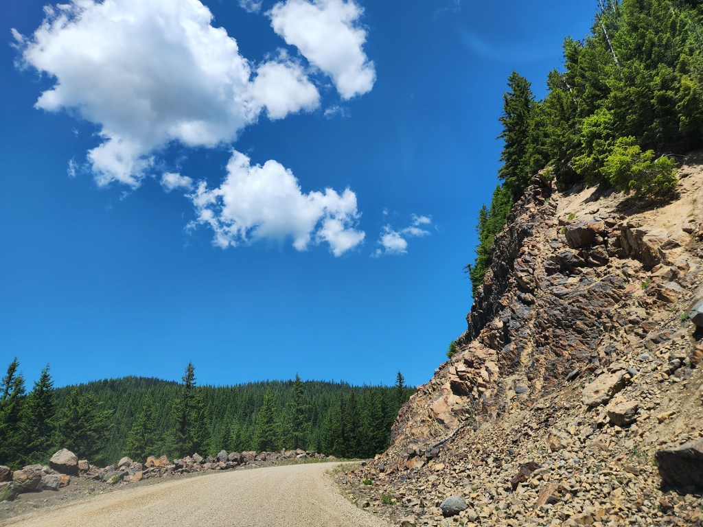 Po dojechaniu do skrzyżowania z NF-23 skręcam w lewo na północ i tu zaczyna się szutrowa droga kiepskiej jakości… 17 mil ze średnią prędkością jazdy 10-15 mil/h…..
