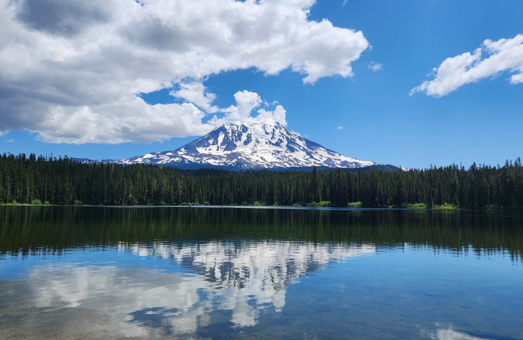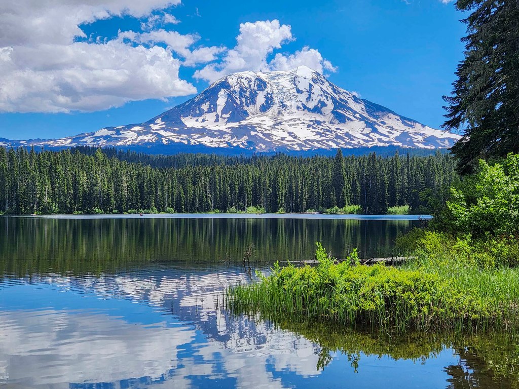 i za chwilę odbijam na Takhlakh lake – skąd rozpościera się przepiekny widok Mount Adams obijający się w jeziorze.