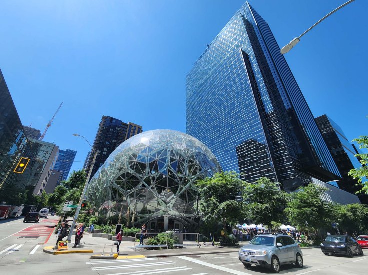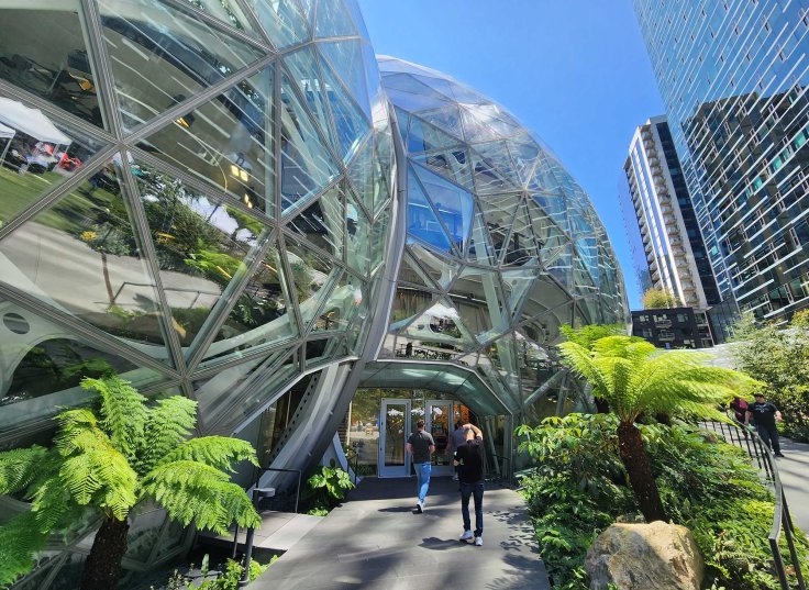 Niestety niedostępne dla zwiedzających … („by appointment only” …. i tylko w pierwszą i trzecią sobotę każdego miesiąca). Zaprojektowanie i budowa całego kampusu Amazona włączając w to „3 szklane kule” kosztowało internetowego giganta aż 4 miliardy dolarów. Kule są miejscem pracy dla około 800 pracowników, którzy w otoczeniu ponad 400 gatunków roślin (łącznie 40,000 roślin pochodzących z 50 krajów), kilku „wodospadów i rzek” układają nowe strategie dla rozwoju firmy.