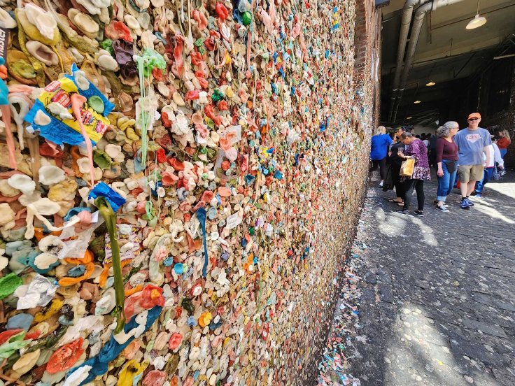 W 1977 roku piersza kawiarnia Sturbuks przeniosla się do Pike Place, gdzie od tamtej pory działa nieprzerwanie. Znak na zewnątrz, (w przeciwieństwie do wszystkich innych), zawiera oryginalne logo – syrenę z nagą piersią, wzorowaną na XV-wiecznym nordyckim drzeworycie. Na głównym górnym poziomie znajduje się również posąg świni o nazwie „Pork’n Beans”, przy którym każdy robi sobie pamiątkową fotkę. Najmniej estetyczną atrakcja targu jest …..aleja oblepiona gumami do żucia…