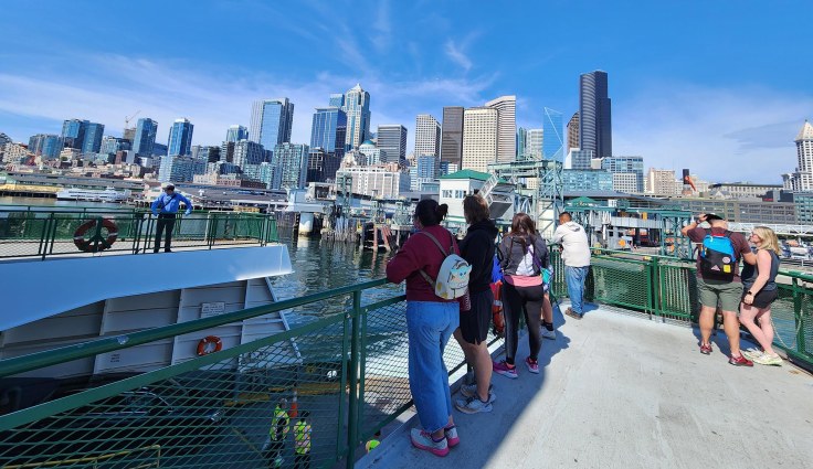 Z Pike Peak jest już całkiem blisko do zatoki. By trochę się ochłodzić wykupuję bilet (bezpośrednio na terminalu) na prom jadący na Bainbridge Island – wyspy znajdującej się po drugiej stronie zatoki Puget Sound. To chyba najlepsze miejsce, skąd można podziwiać panoramę całego miasta.