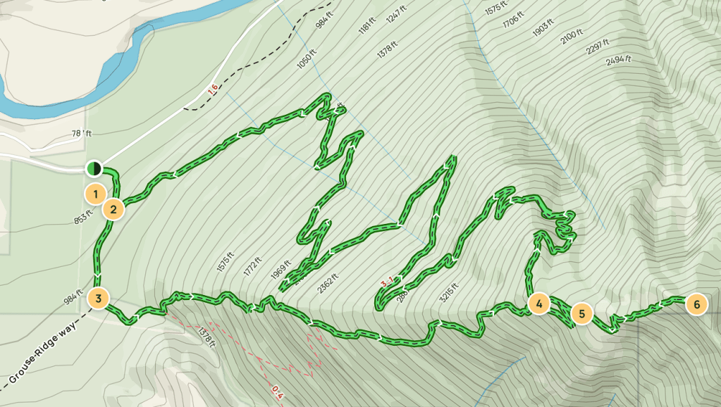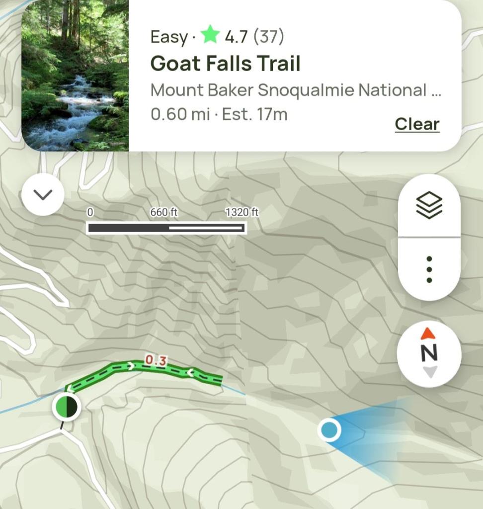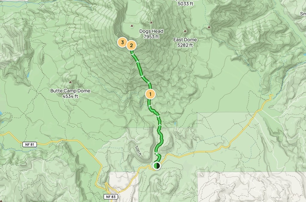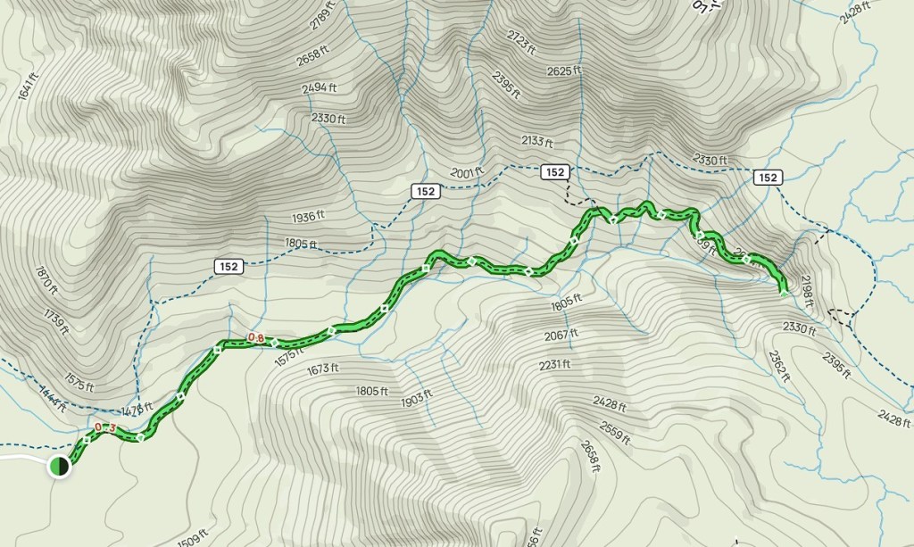 Tu bardzo przydaje się „ściągnięta” mapa szlaku z alltrails. Jest bardzo dużo ścieżek dochodzących i bardzo łatwo się przez to zgubić. Przejście szlaku zajmuje mi 3 godziny (długość 3,6 mili).
