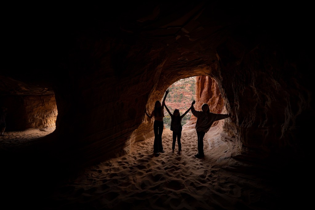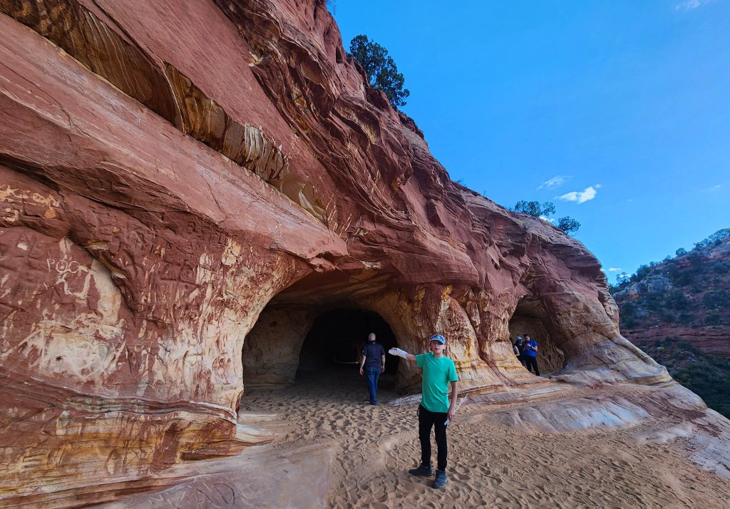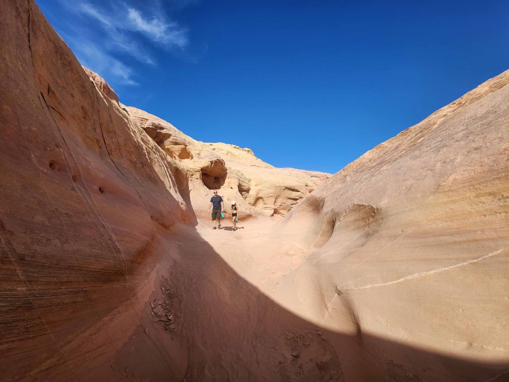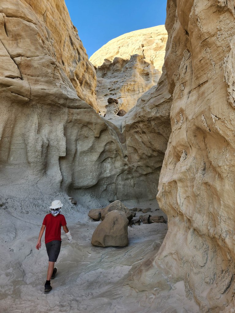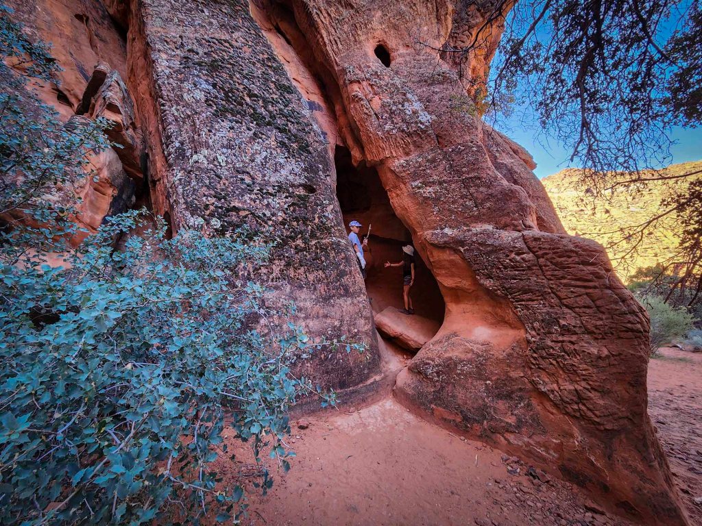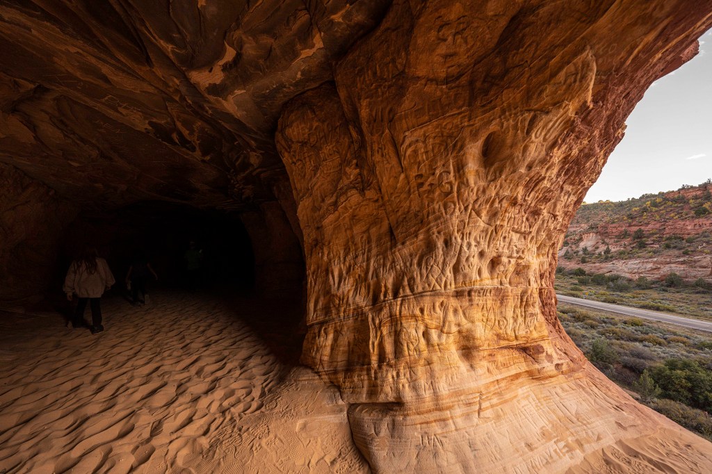 Po wyjściu z kanionu otrzymujemy konkretne uderzenie gorącem… co powoduje, że zdyszani ledwo dochodzimy do auta…. Wracamy do Kanab i po szybkiej przekąsce w lokalnej hamburgerowni jedziemy na kolejny ciekawy szlak – Sand caves (Moqui Caverns).