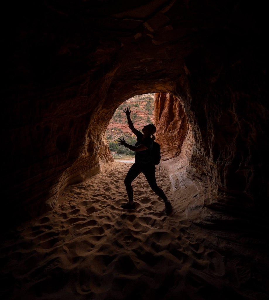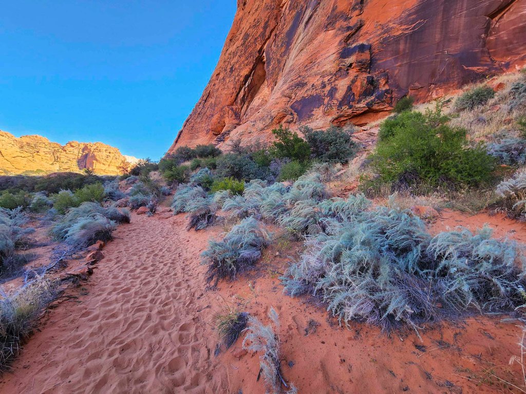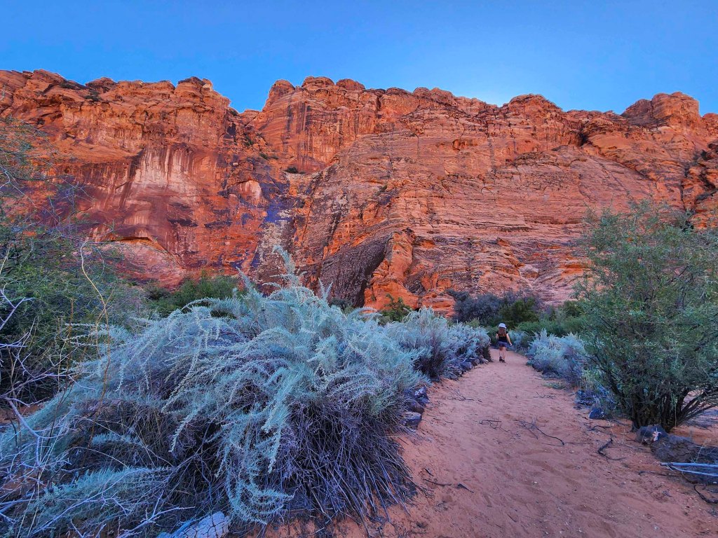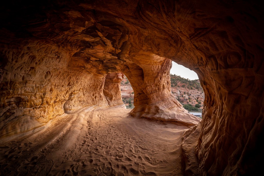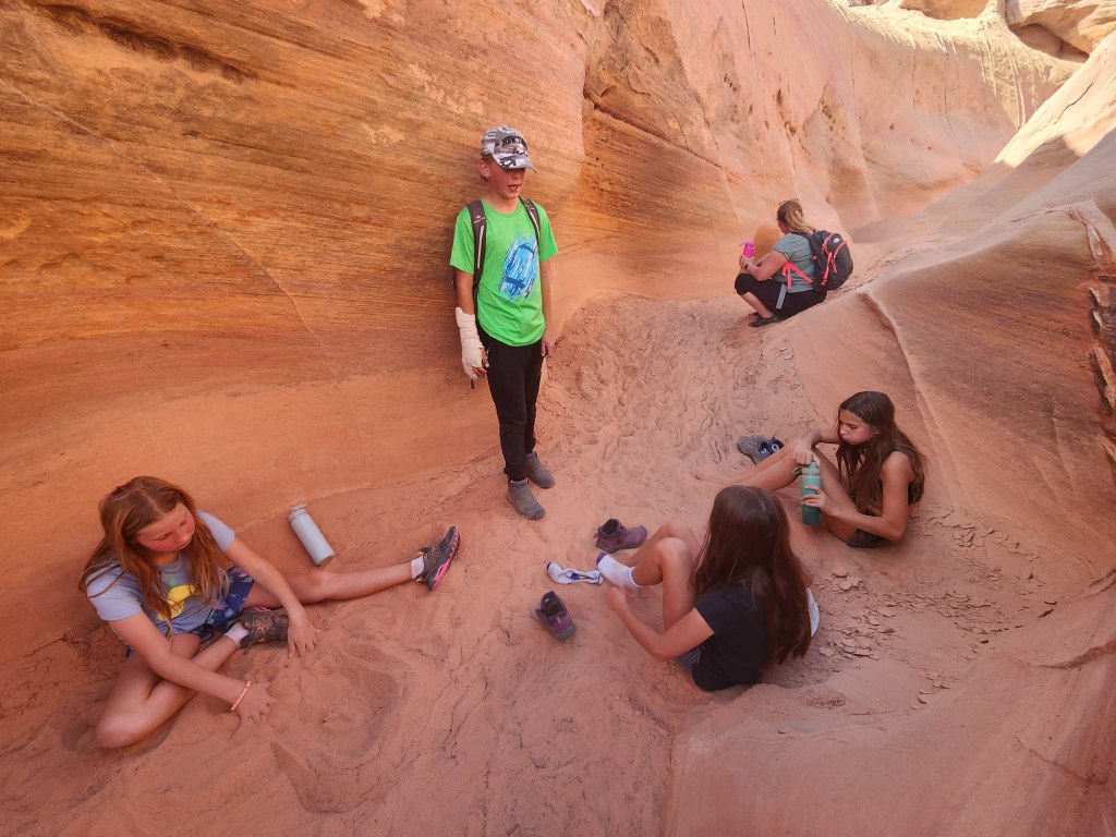 Po wyjściu z kanionu otrzymujemy konkretne uderzenie gorącem… co powoduje, że zdyszani ledwo dochodzimy do auta…. Wracamy do Kanab i po szybkiej przekąsce w lokalnej hamburgerowni jedziemy na kolejny ciekawy szlak – Sand caves (Moqui Caverns).