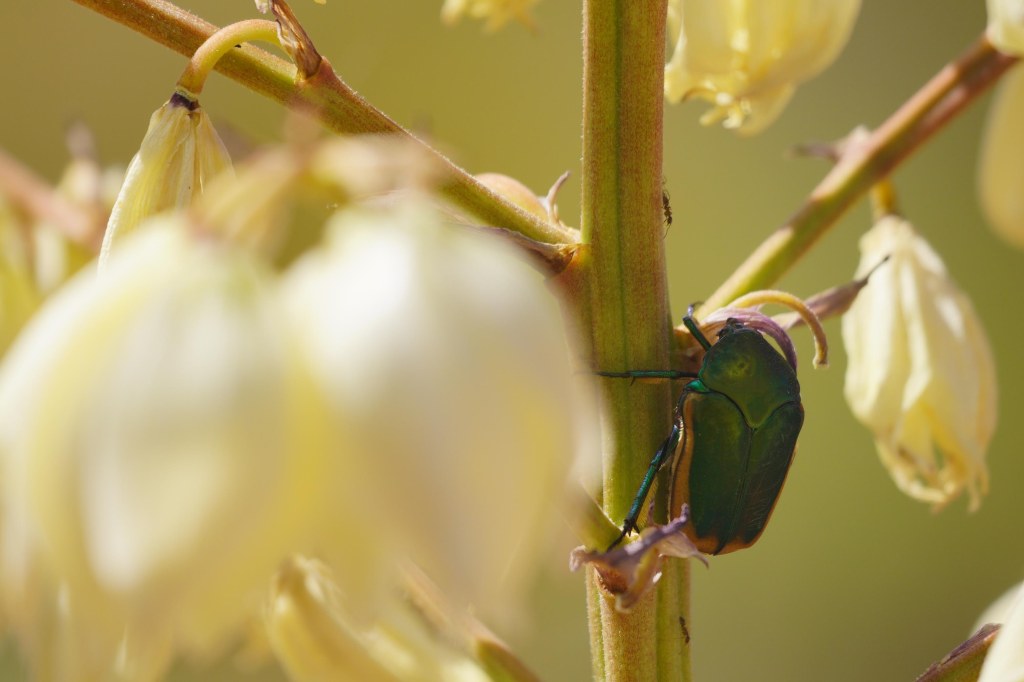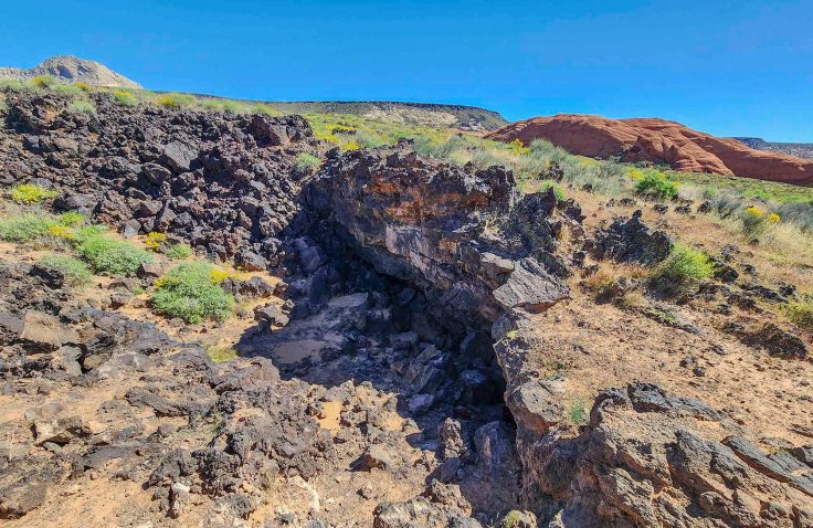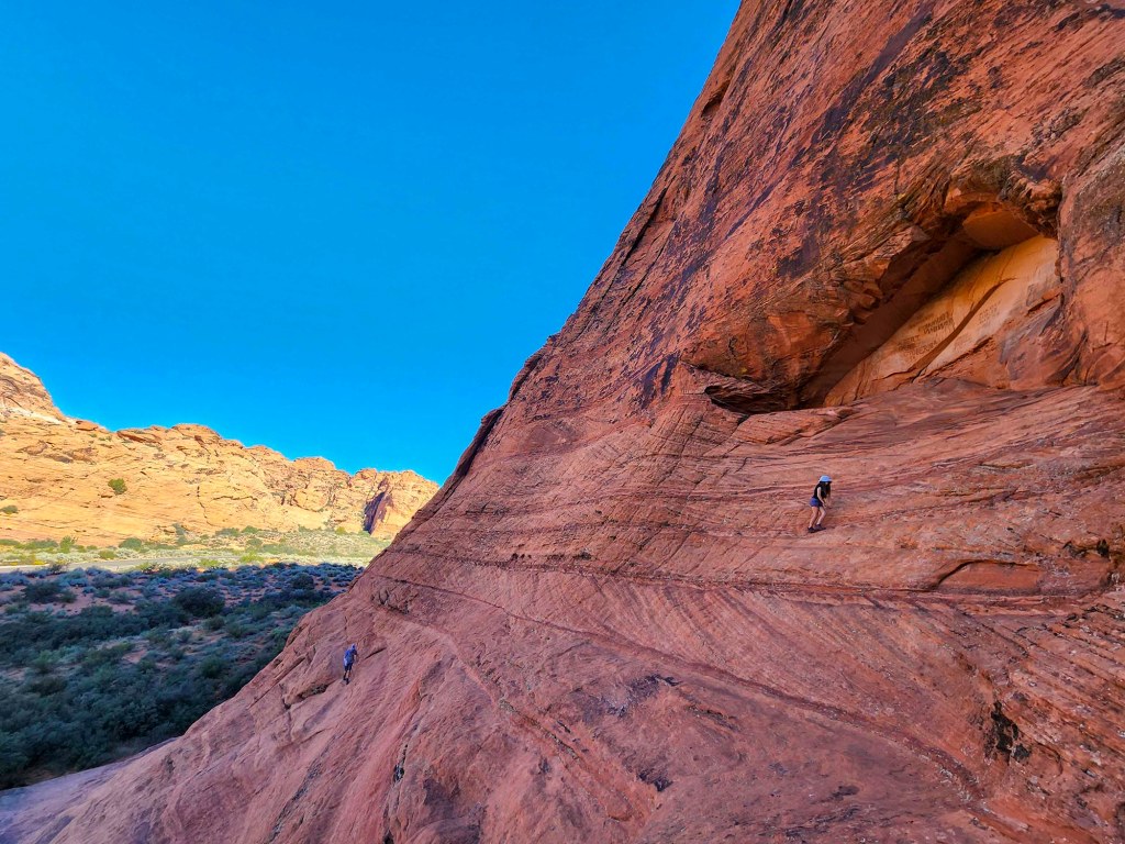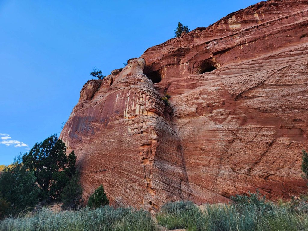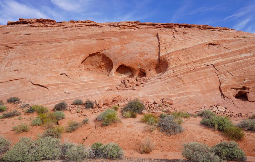 Idąc na północ poprzez gęste zarośla „sagebrush’owe” dochodzimy do stromej skały, na którą musimy się wspiąć, aby dotrzeć do jaskiń.